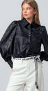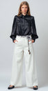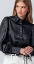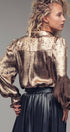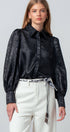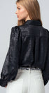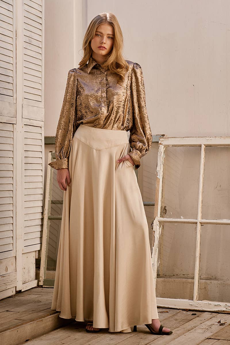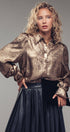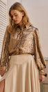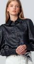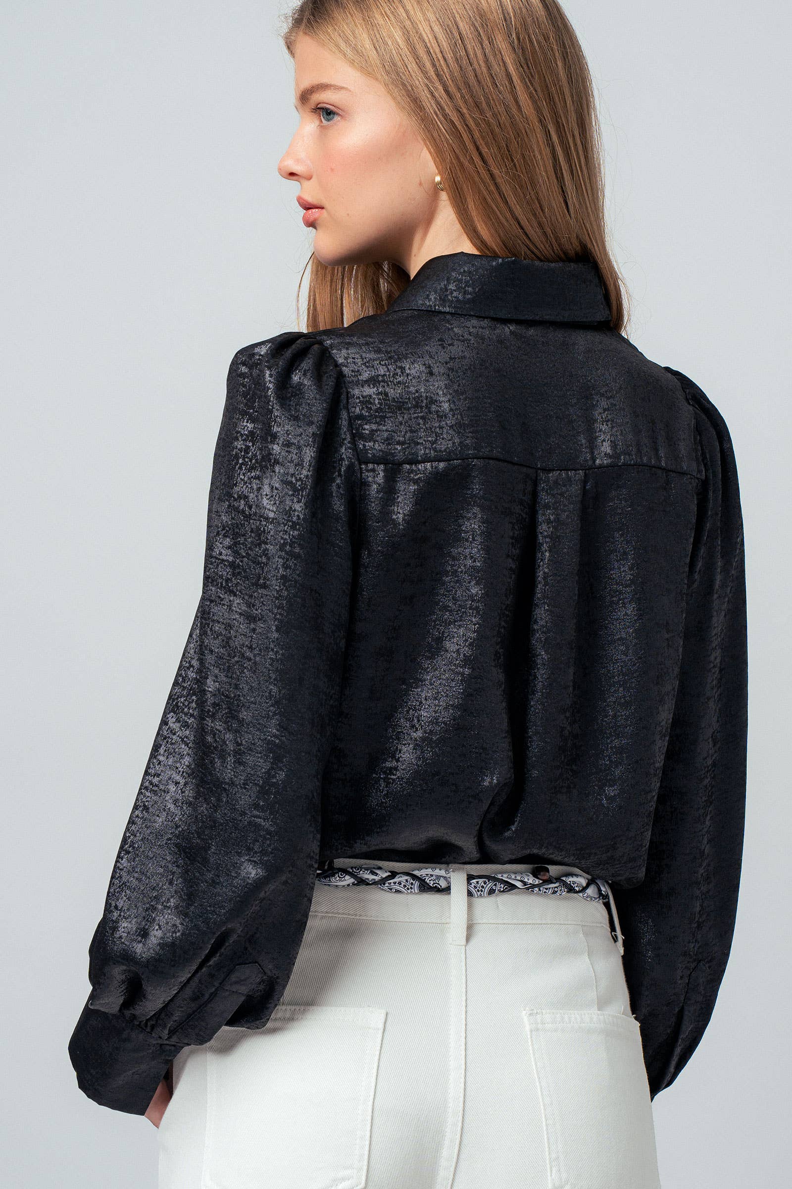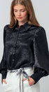 Metallic Billowy Sleeve Button Down Blouse