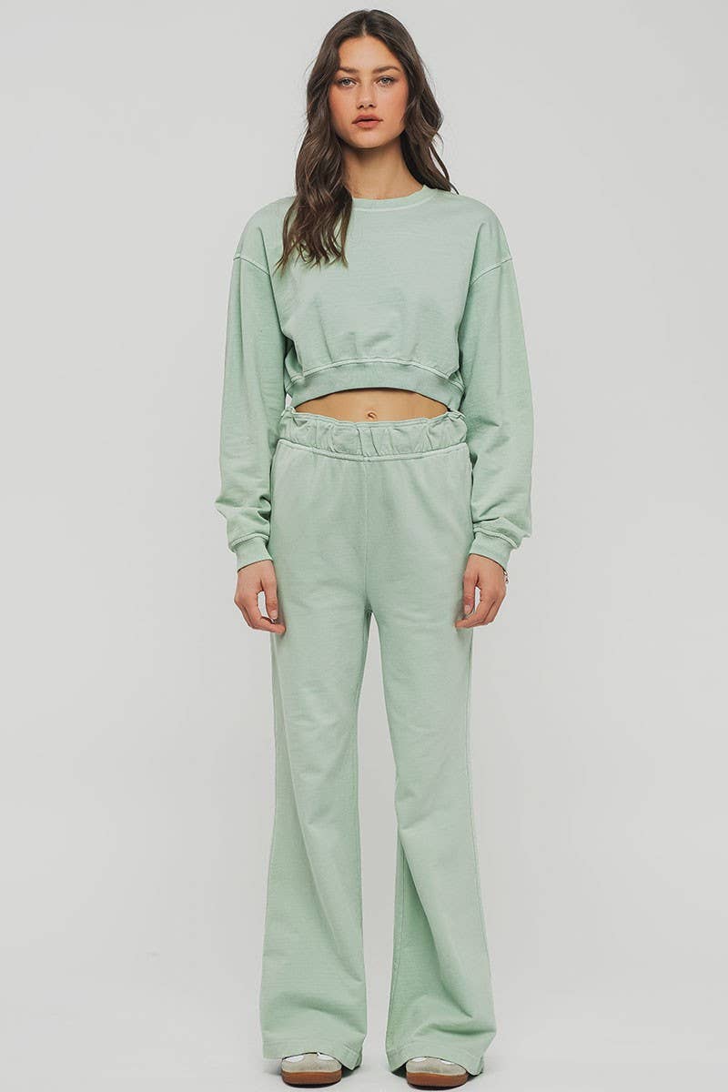 Mineral Wash Wide Leg Elastic Waist Casual Sweatpants