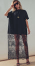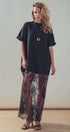 Fit: Oversized, boxy t-shirt fit on top with a straight, flowy maxi skirt.