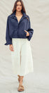 - High stand collar, snap placket
