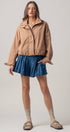 Modern Relaxed Stand Collar Camel Zip Jacket