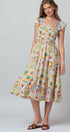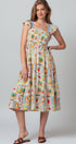 Fit: Fitted, smocked bodice with a comfortable, flowy tiered midi skirt.