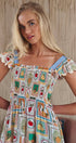 Novelty Stamp Print Smocked Midi Dress