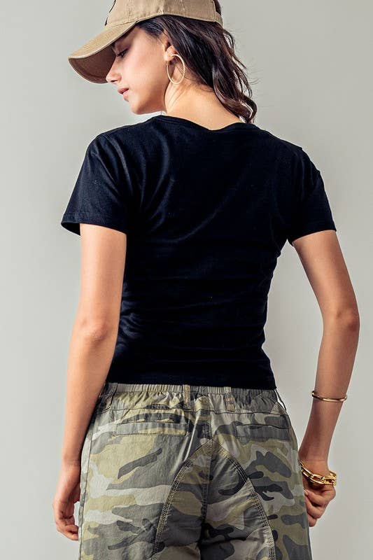 A lightweight and soft scoop neck tee crafted from 100% organic cotton for ultimate comfort. Designed with short sleeves and a versatile fit, this tee is perfect for layering or casual wear during spring and summer.