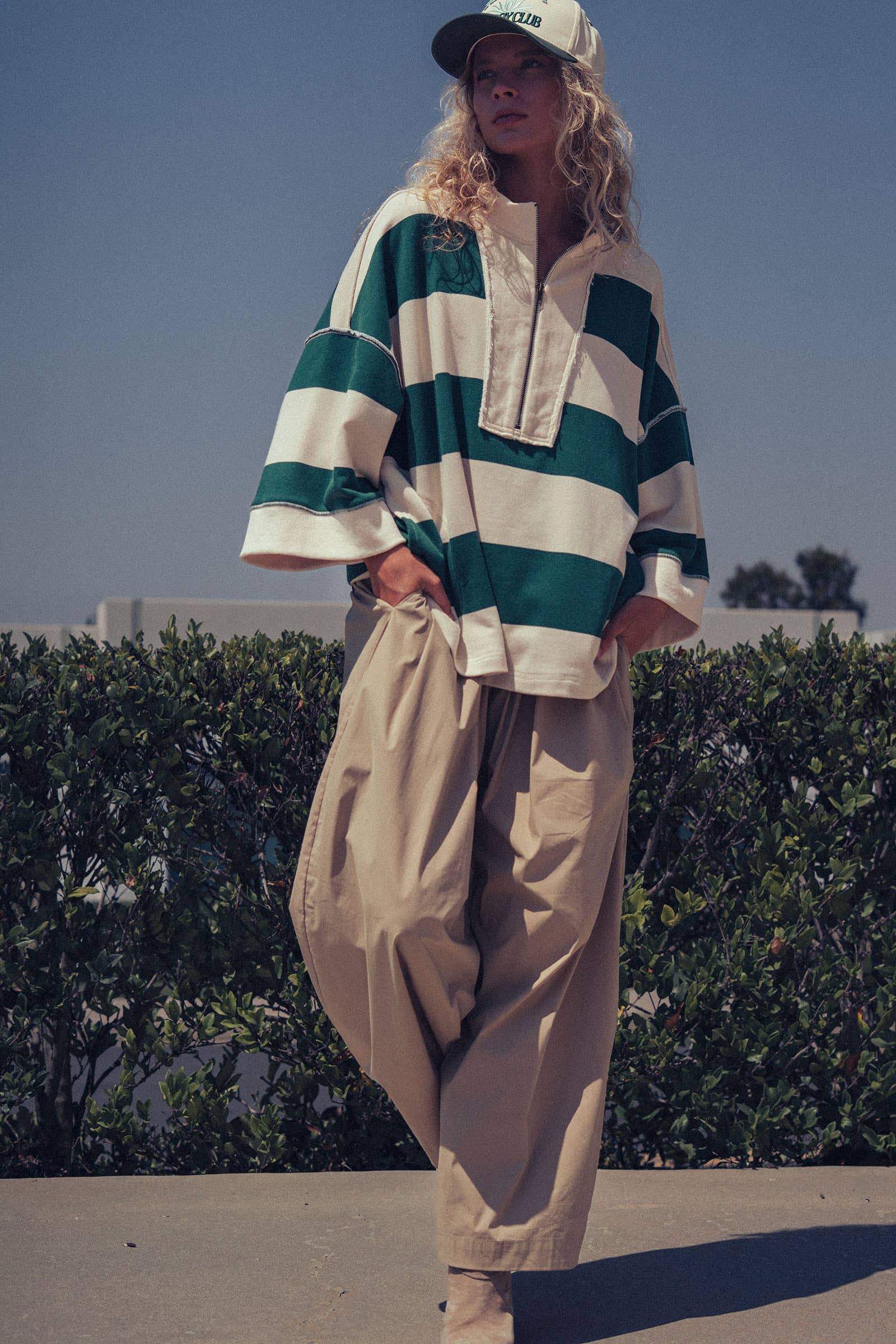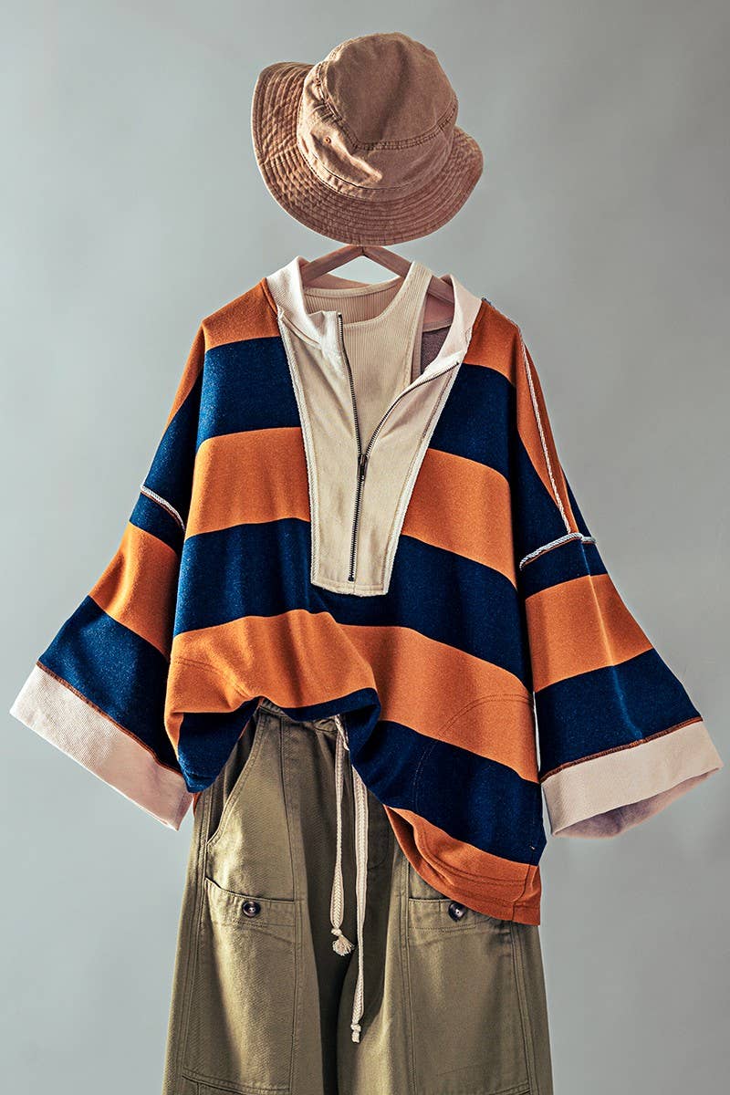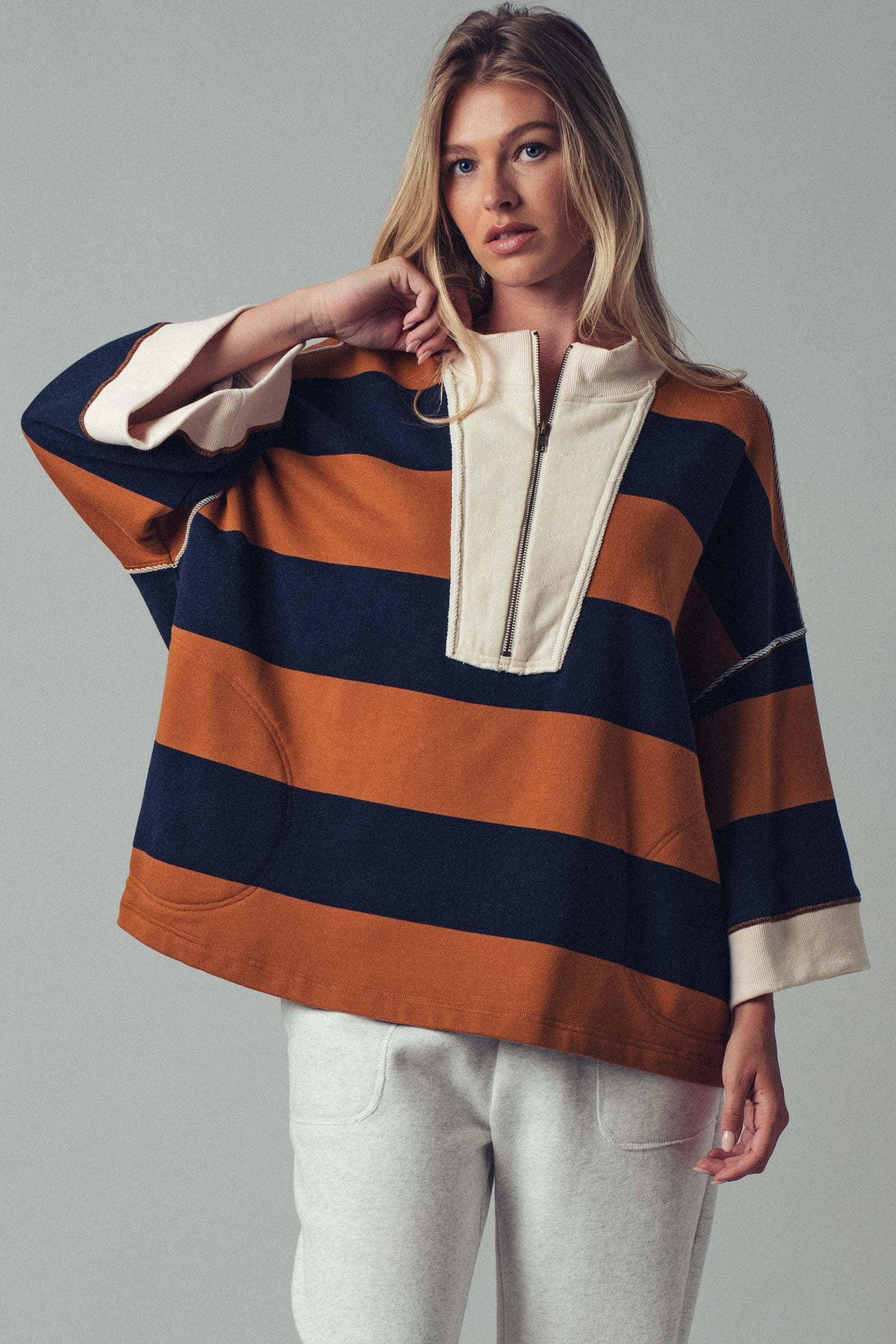 Oversized Half Zip Bold Stripe Statement Pullover Sweatshirt