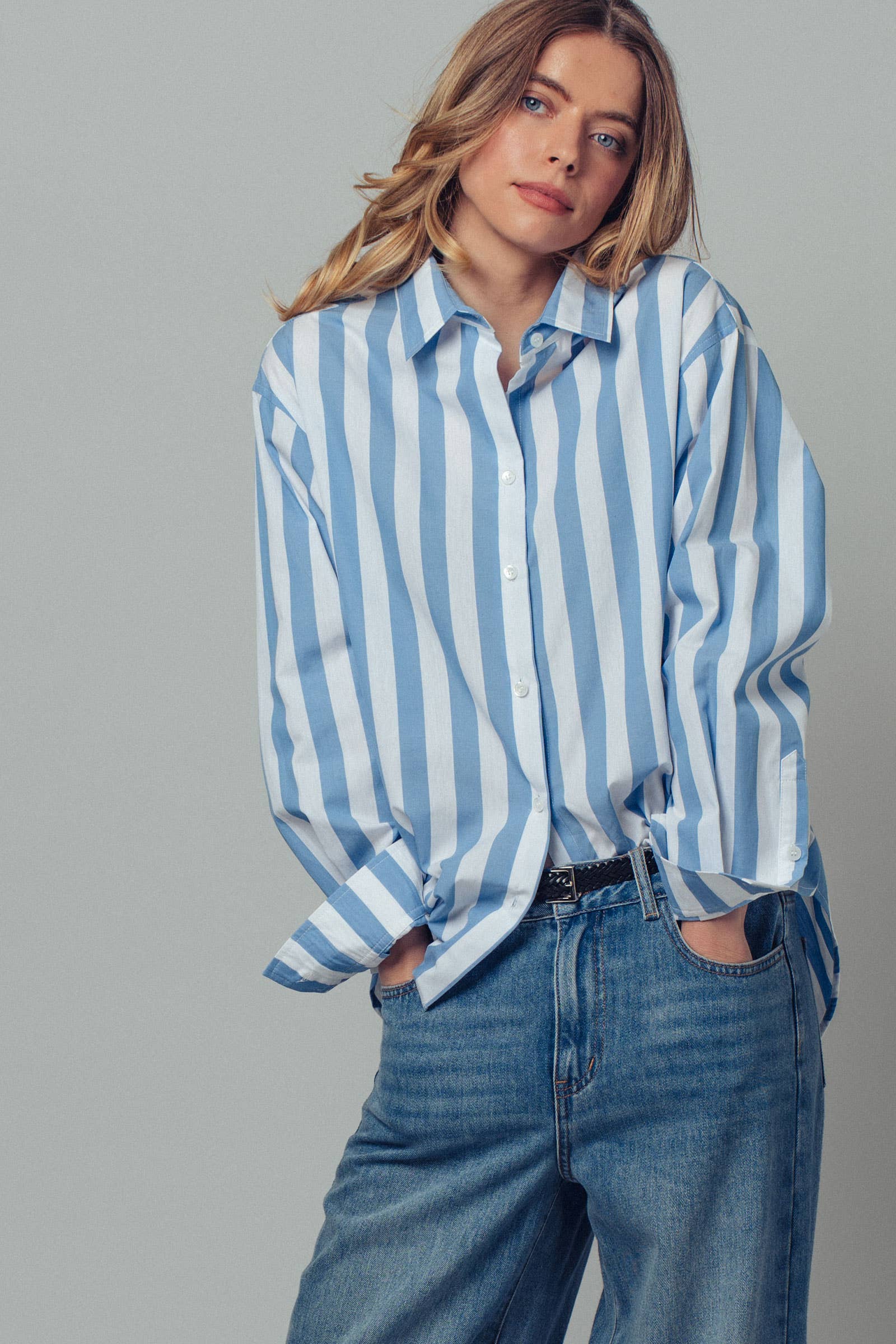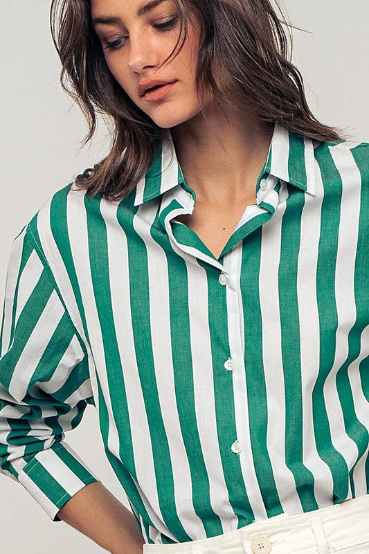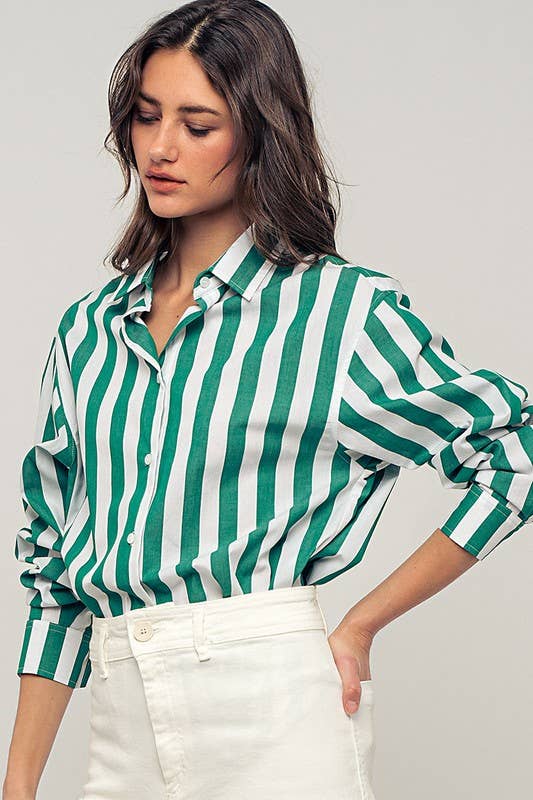 Oversized Stripe Button Down Collared Shirt