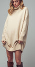 Oversized Turtleneck Ribbed Knit Sweater Dress