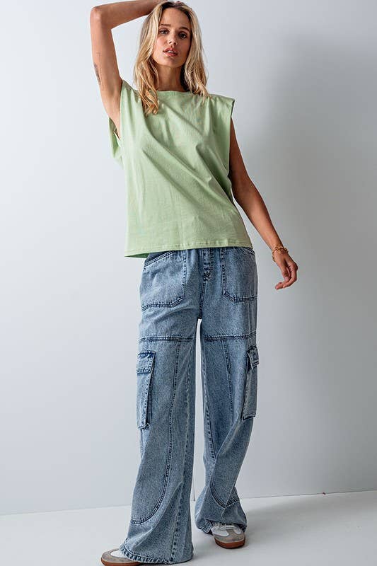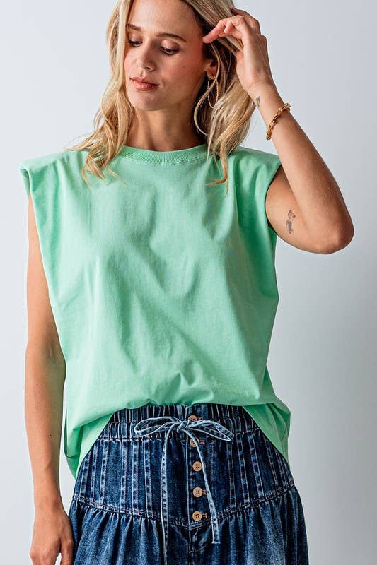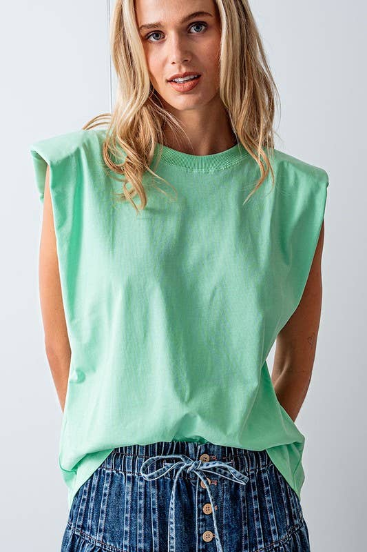 Padded Shoulder Sleeveless Cotton Muscle Tee