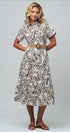 Paisley Cotton Belted Tiered Midi Shirt Dress