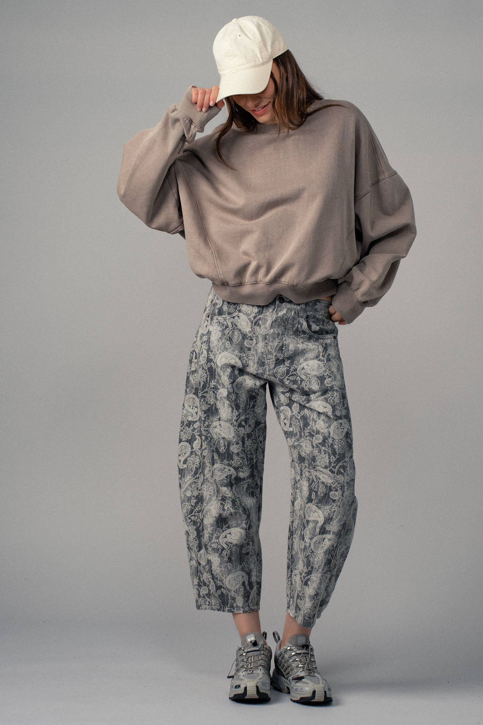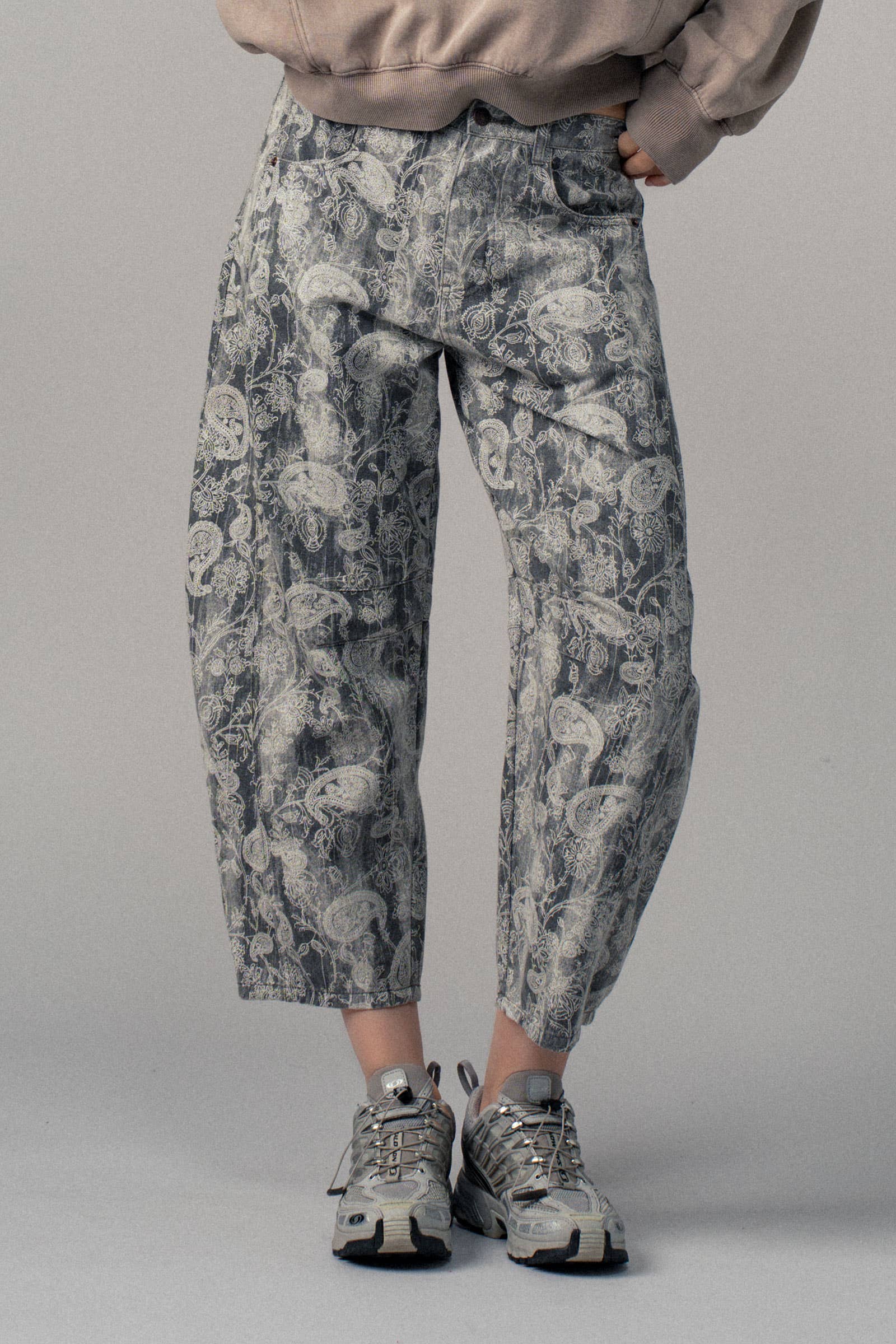 Add flair to your everyday denim with these paisley print wide-leg pants. Featuring a relaxed fit and slightly cropped hem, they're perfect for spring 2025 clothing and casual summer looks.