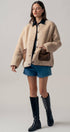 Faux Shearling Jacket with Suede Pockets