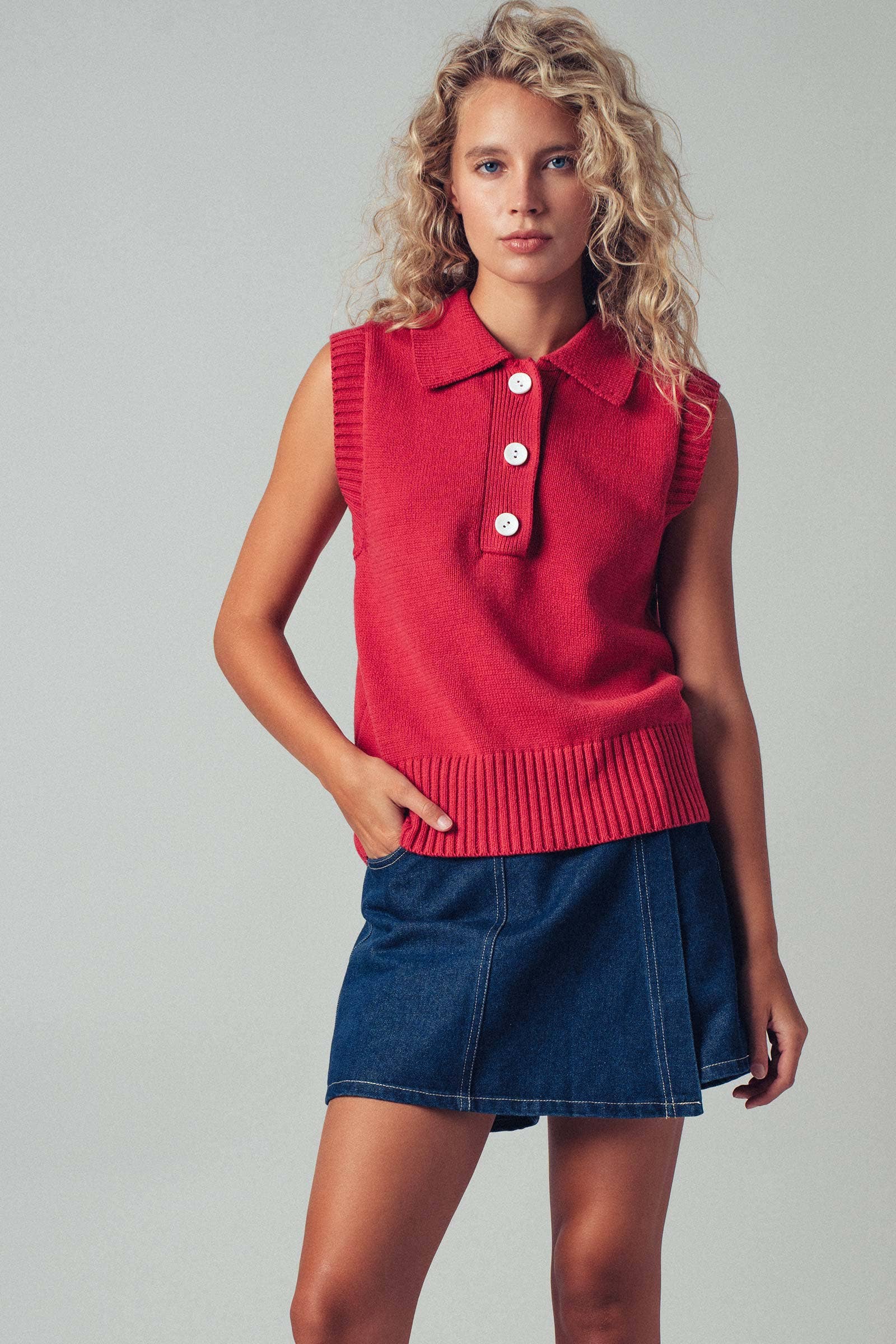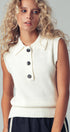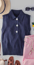 Elevate your women’s clothing wardrobe with this chic sleeveless knit polo vest, perfect for spring 2025 clothing, summer, or business-casual outfits. Featuring a classic polo collar and a comfortable, breathable knit, this versatile vest layers easily over blouses or tees for work, weekend brunches, or transitional seasons.