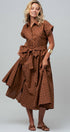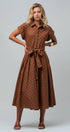 Polka Dot Cotton Belted Midi Shirt Dress