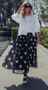Polka Dot Elastic Waist Midi Skirt