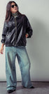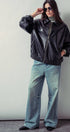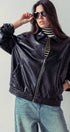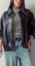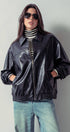 Relaxed Faux Leather Zip-Up Statement Jacket
