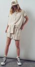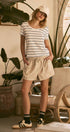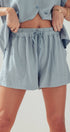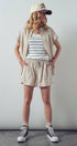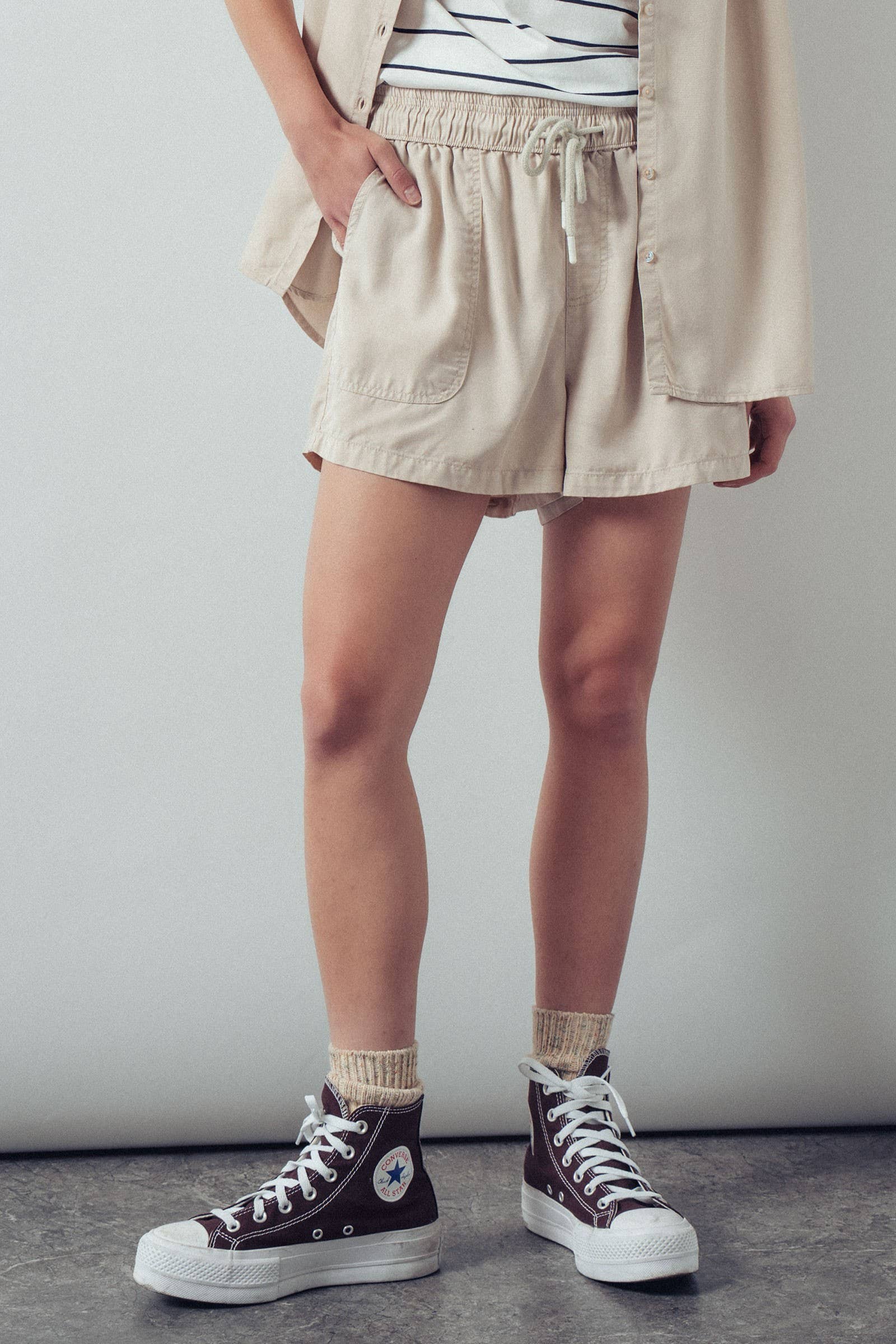 The ultimate everyday essential, these relaxed-fit shorts are designed for effortless comfort and style. Crafted from a soft rayon-cotton blend, they feature an easy pull-on elastic waistband with a drawstring, while patch pockets add a touch of utility-inspired charm. Material: Rayon/Cotton Blend