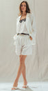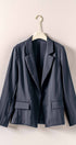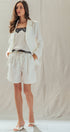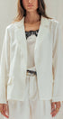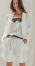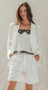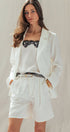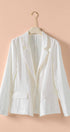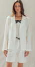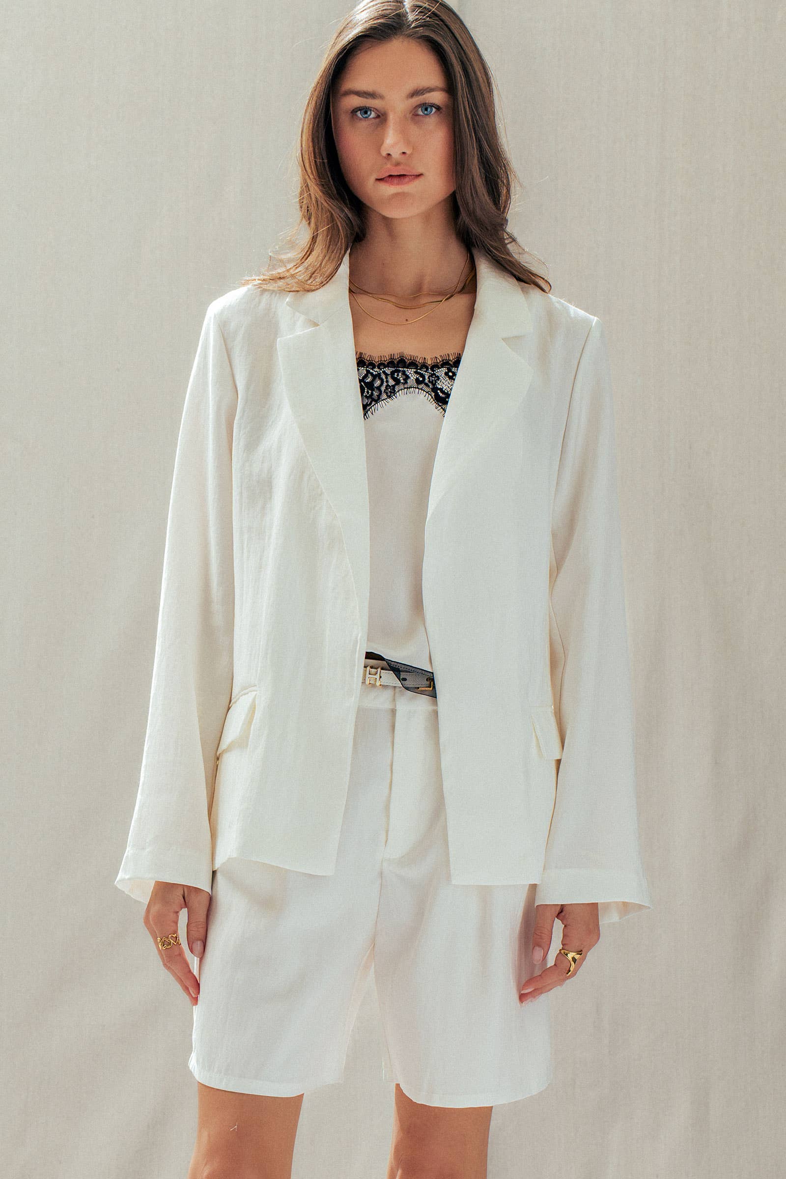 This tailored yet relaxed blazer offering a fresh, breezy update to classic suiting. Its versatile open-front silhouette creates a clean, effortless line that pairs seamlessly with matching shorts or high-waisted jeans for a polished, modern western apparel aesthetic.