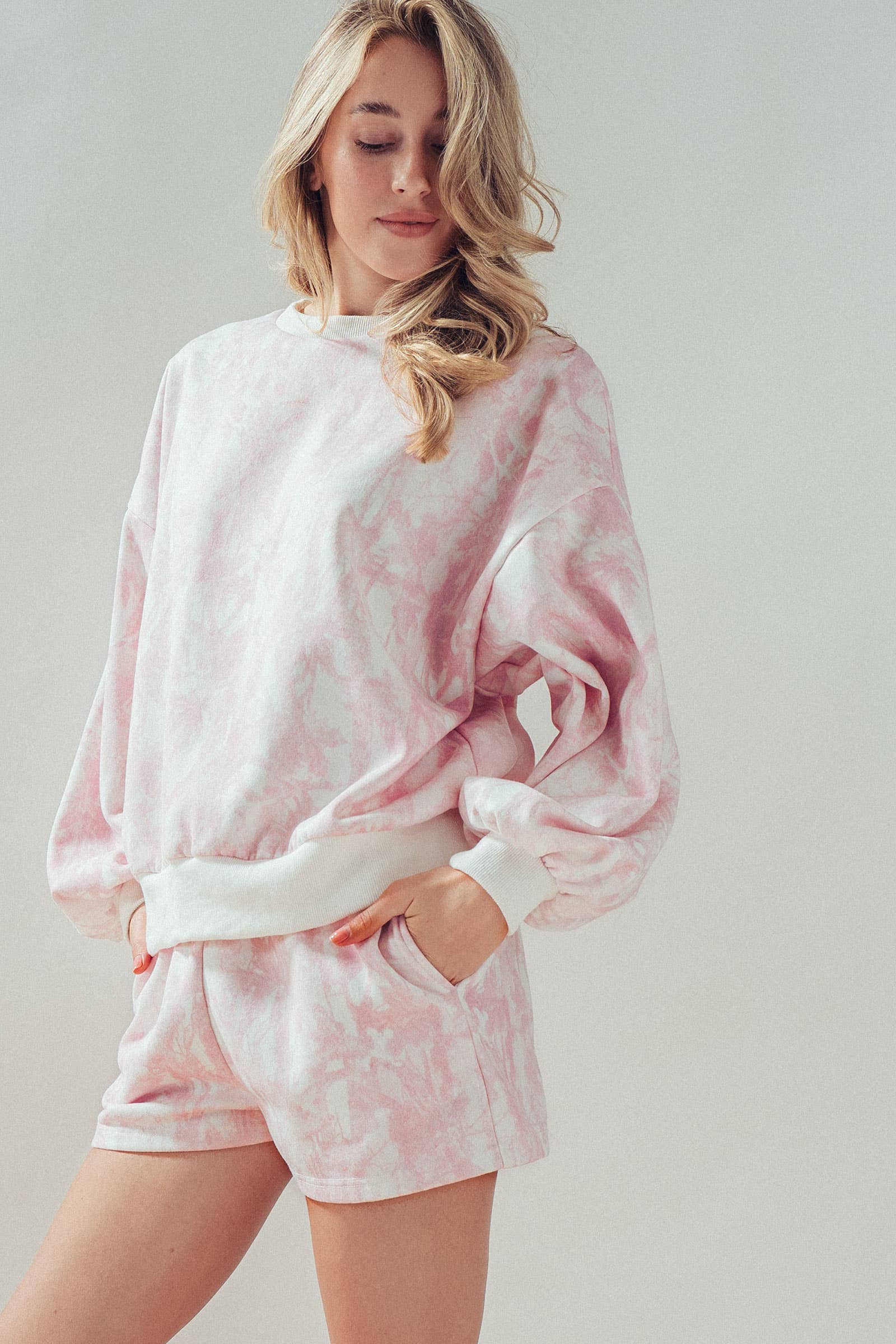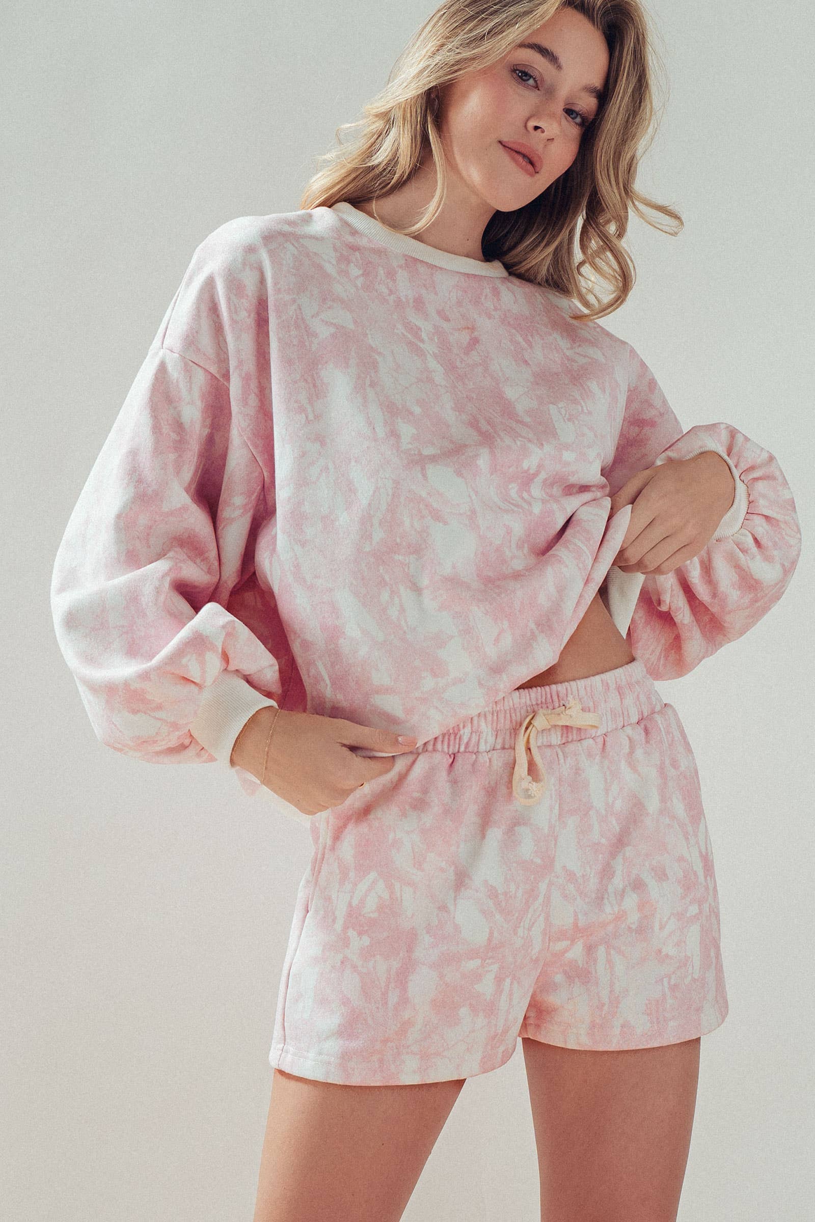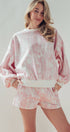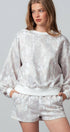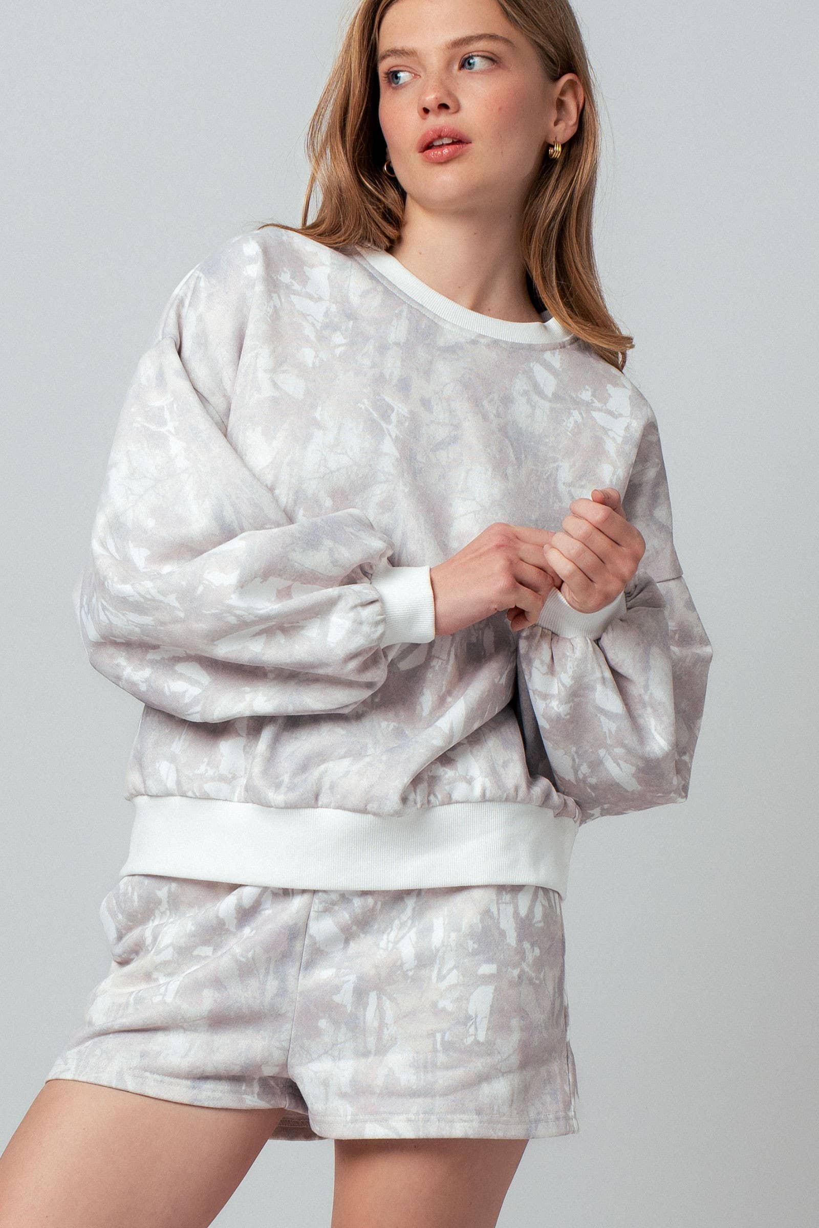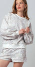 Unwind in effortless comfort with this matching leaf-print lounge set. Featuring a soft balloon-sleeve top and easy drawstring shorts, this outfit is perfect for cozy days or casual errands in neutral, boho-inspired style.