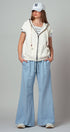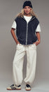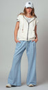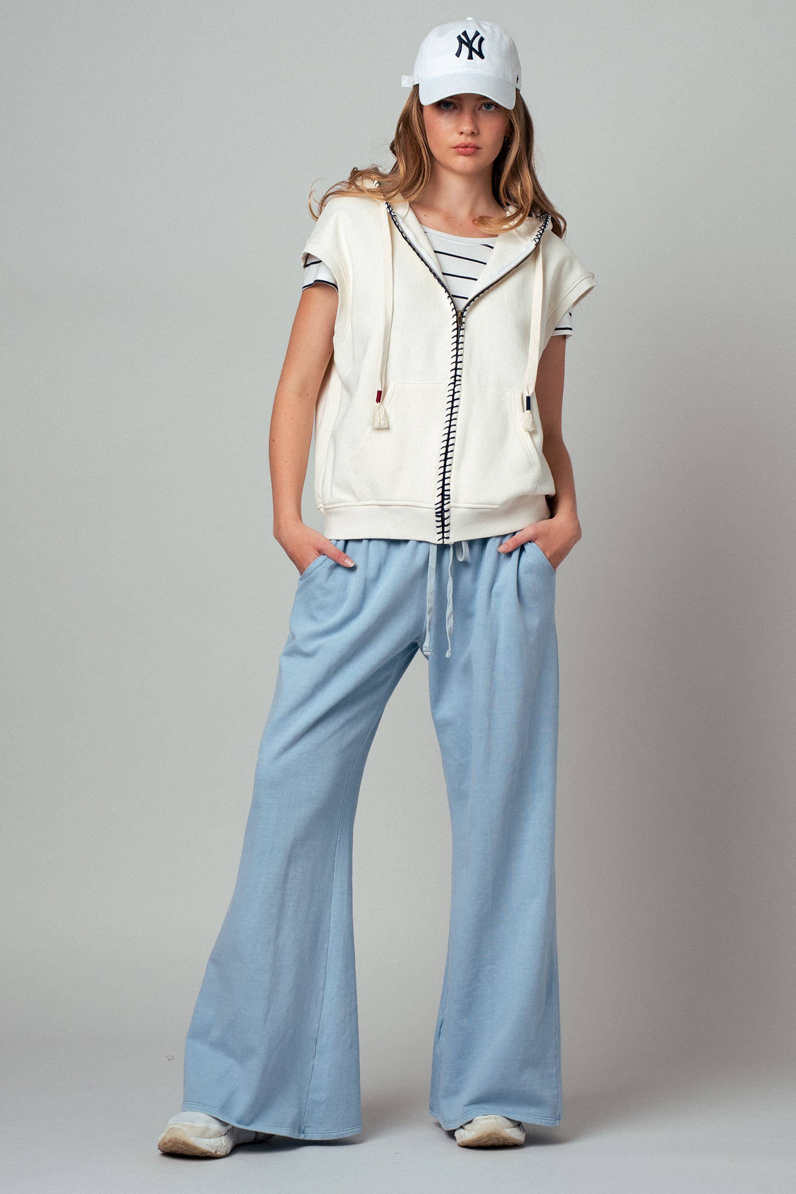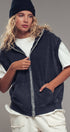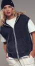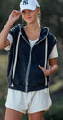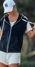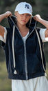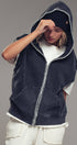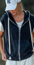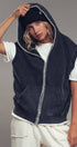 Relaxed Sleeveless Contrast Stitch Zip Hoodie