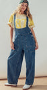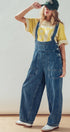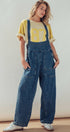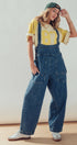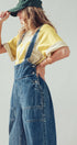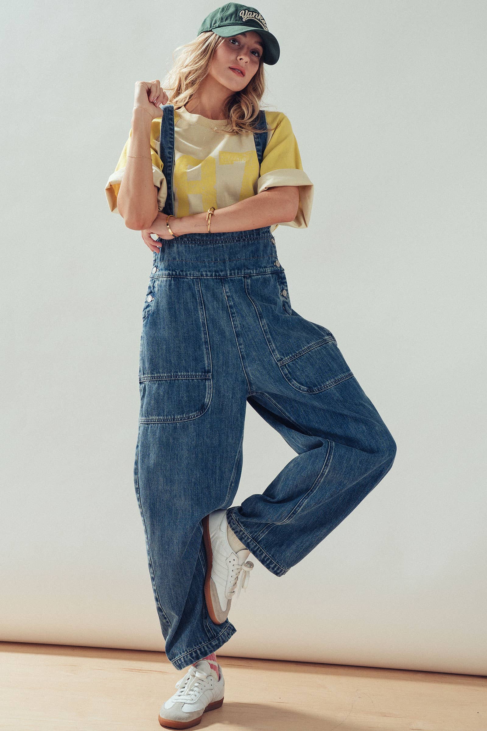 Capture a laid-back, utilitarian aesthetic with these wide-leg denim overalls. Featuring a vintage medium wash and a comfortable slouchy fit, this one-piece is designed with adjustable shoulder straps, side button closures, and spacious front patch pockets for a practical yet stylish look.