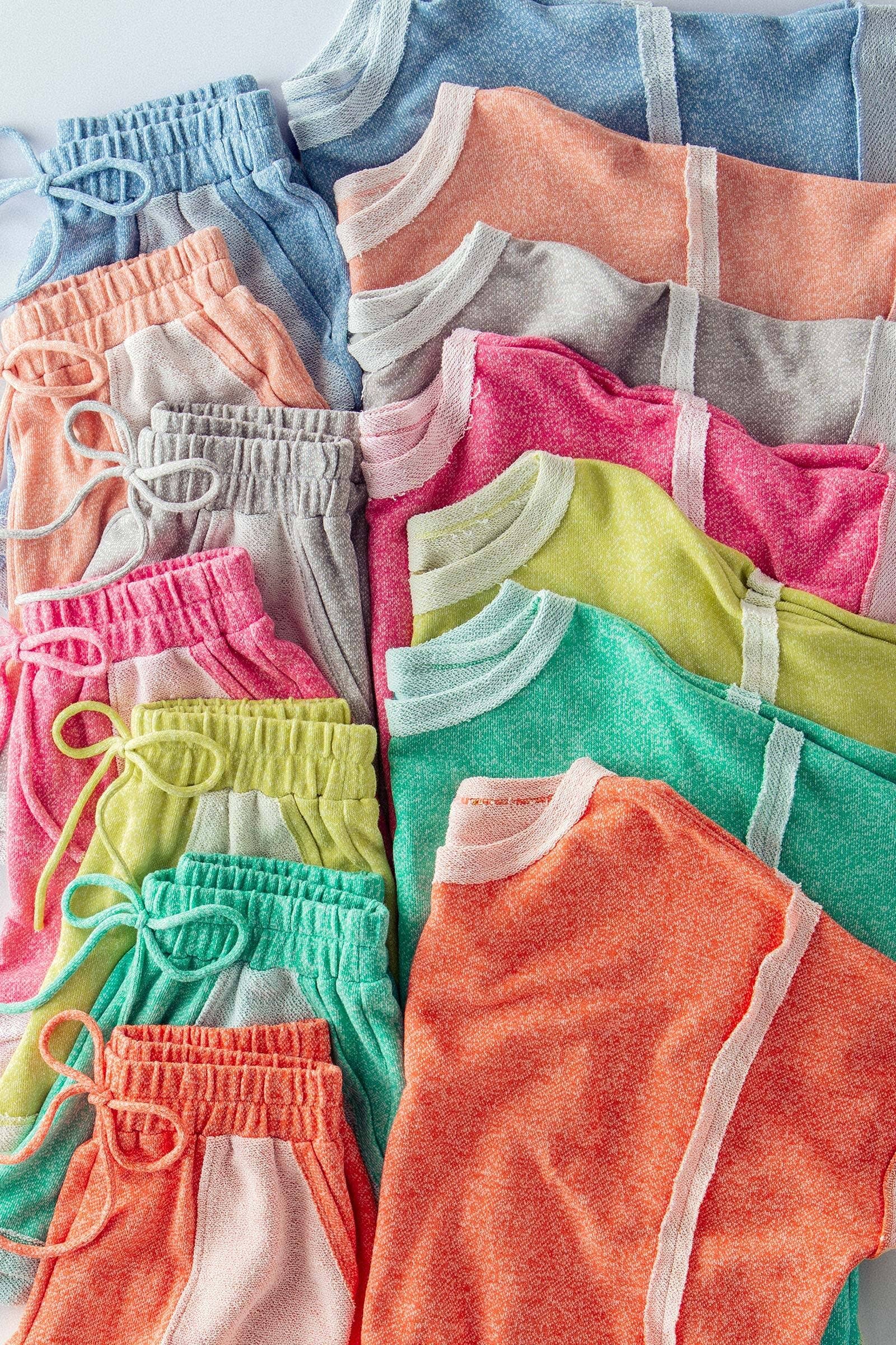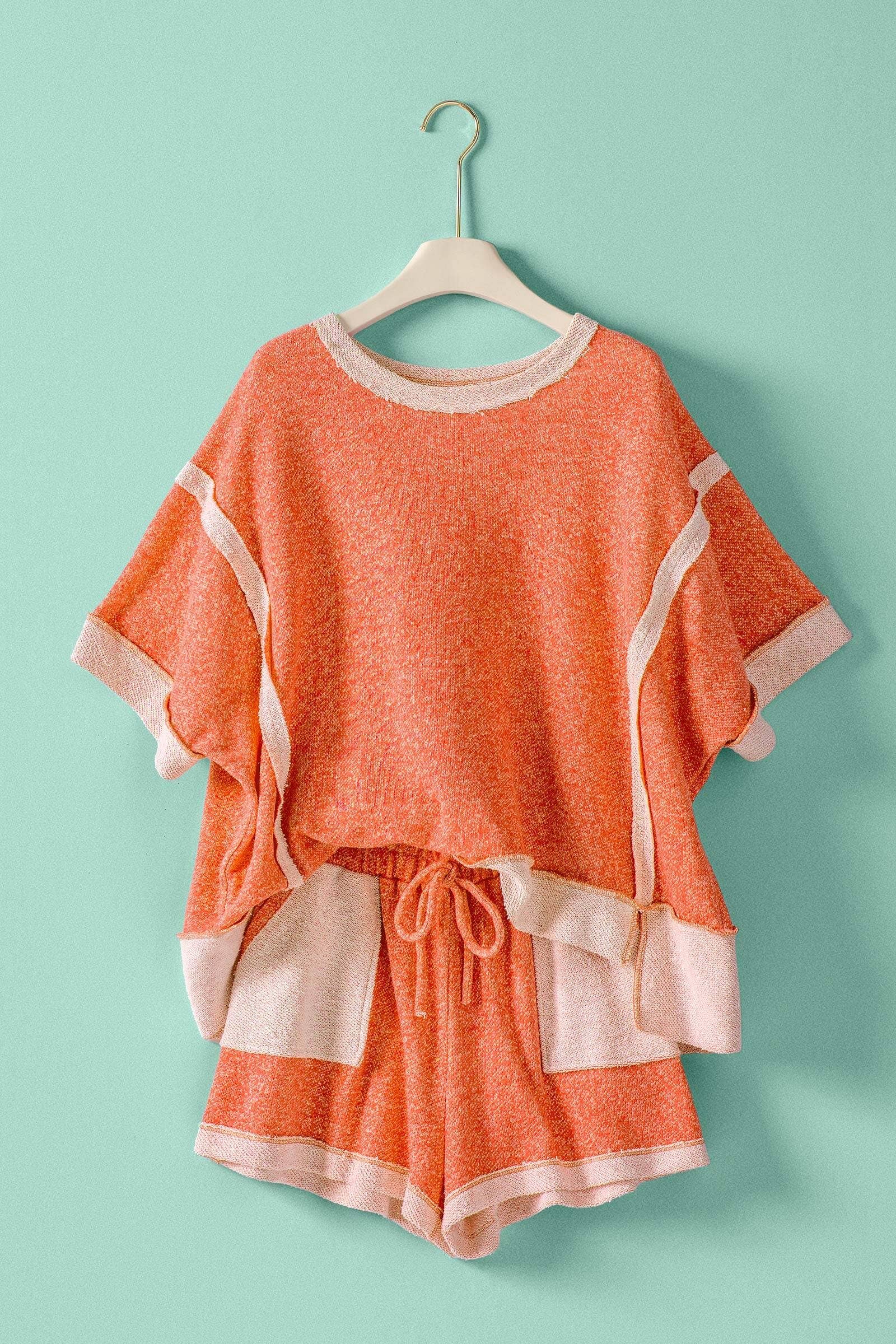 Make a bold statement even on your off-duty days with this vibrant lounge set. tapping into the "inside-out" streetwear trend, this two-piece set features exposed raw seams and contrast texture details. Crafted from a soft cotton-blend terry, it creates a look that is equal parts cozy and effortlessly cool.
