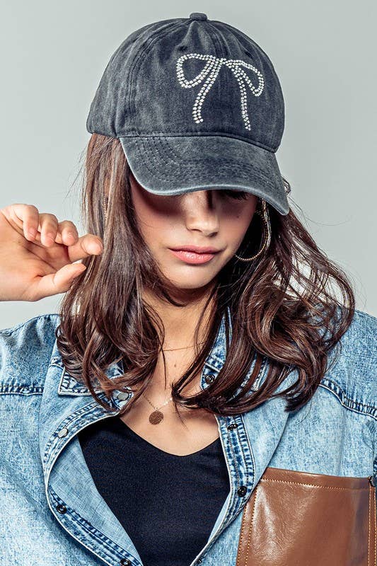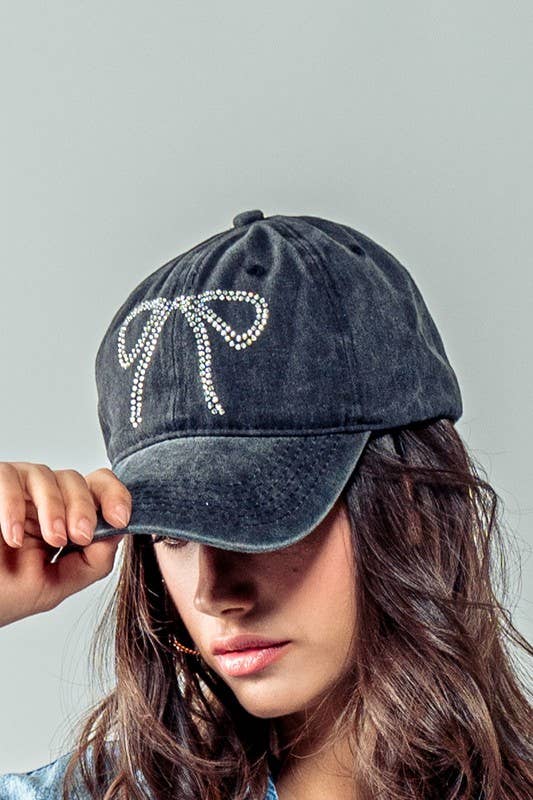 Rhinestone Bow Embellished Baseball Cap