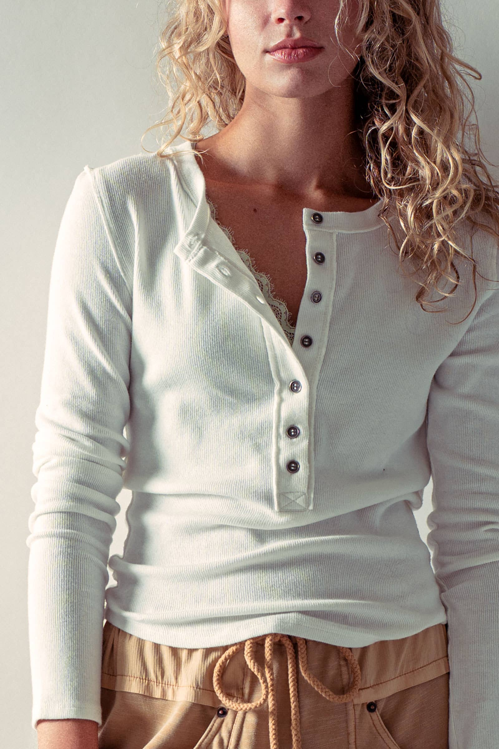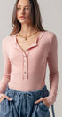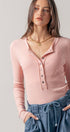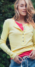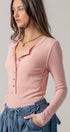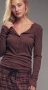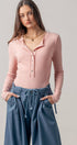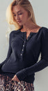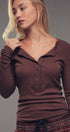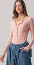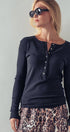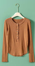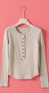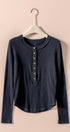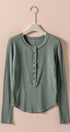 Ribbed Henley Long Sleeve Top