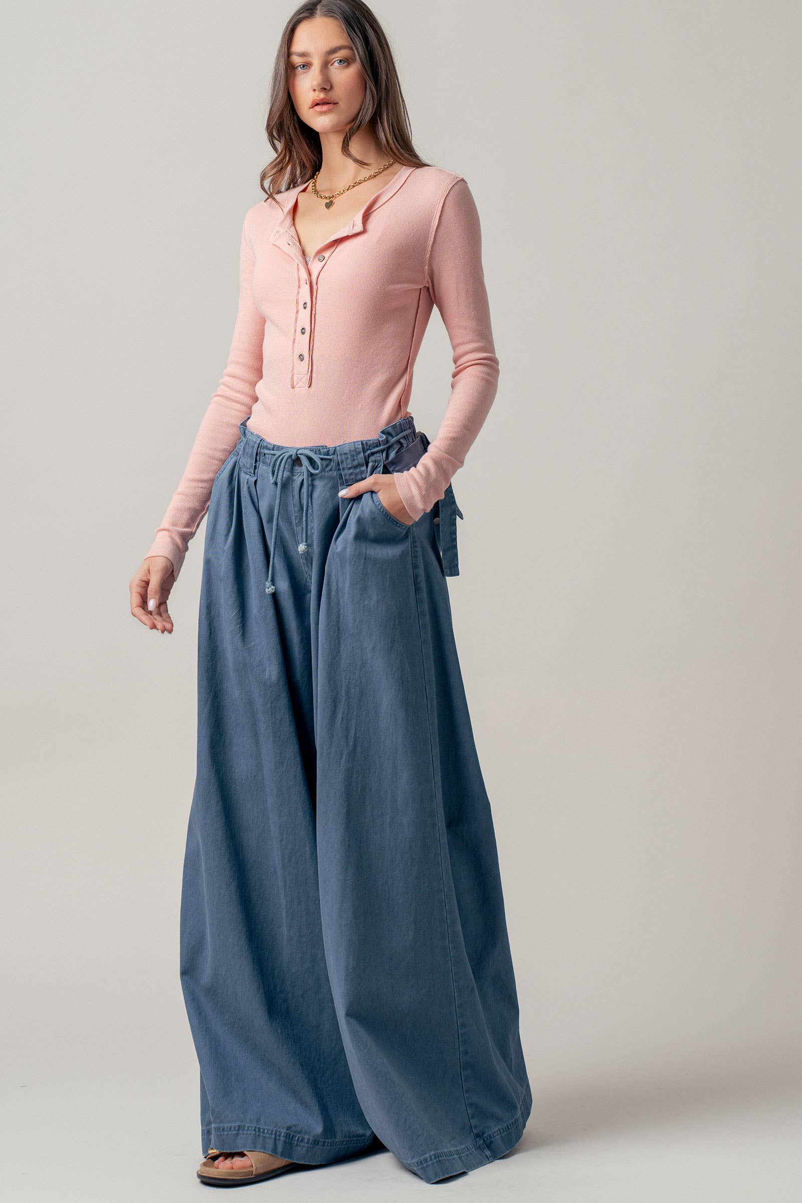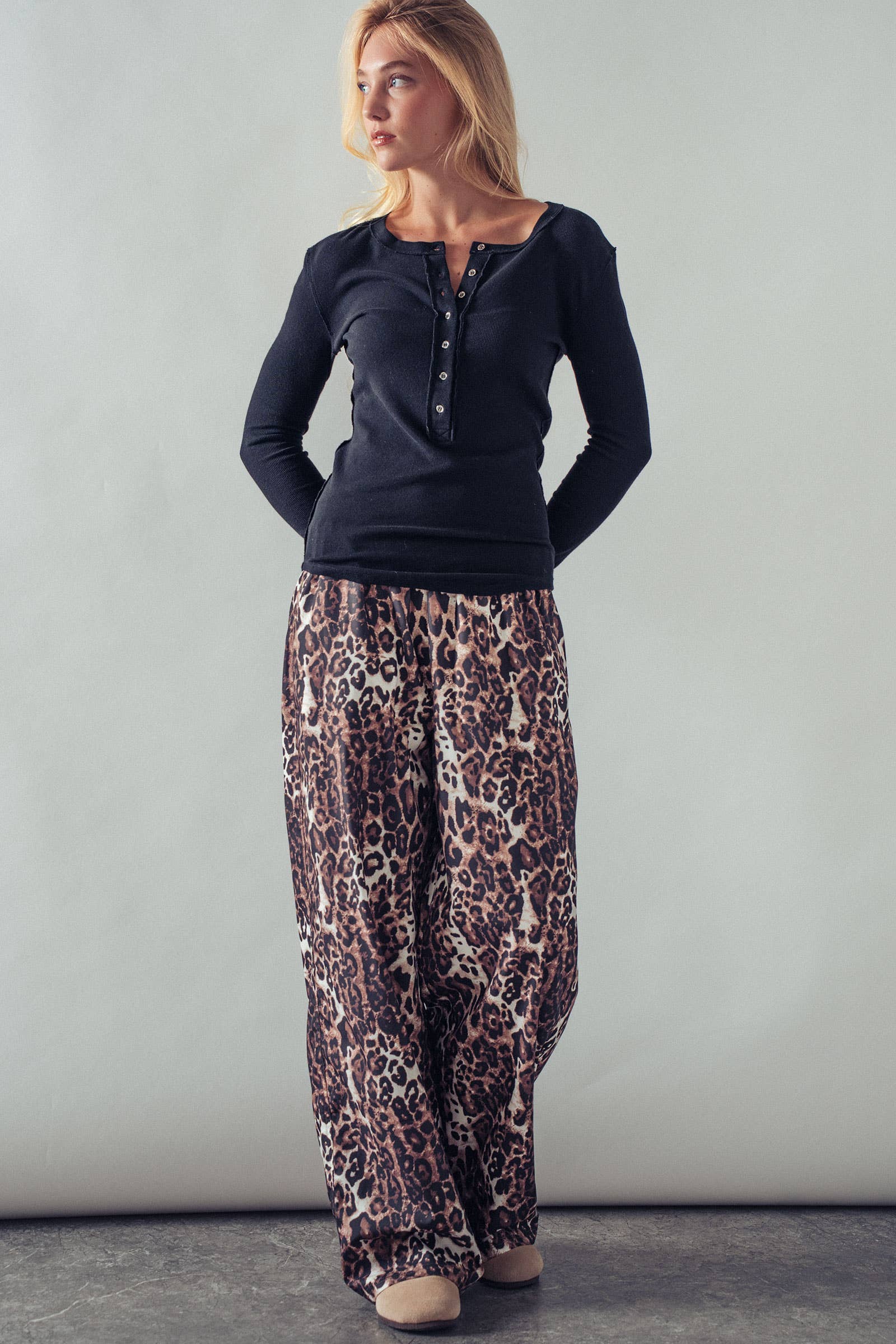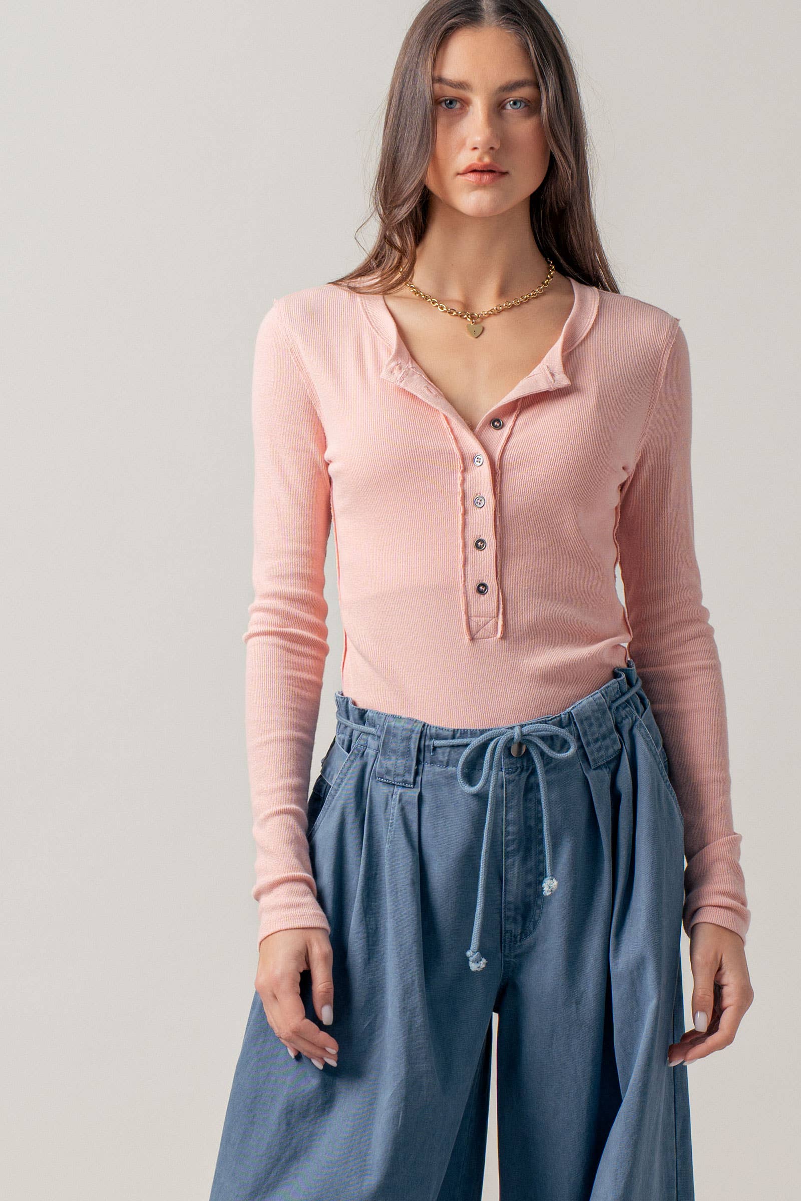 - Classic button-up henley neckline