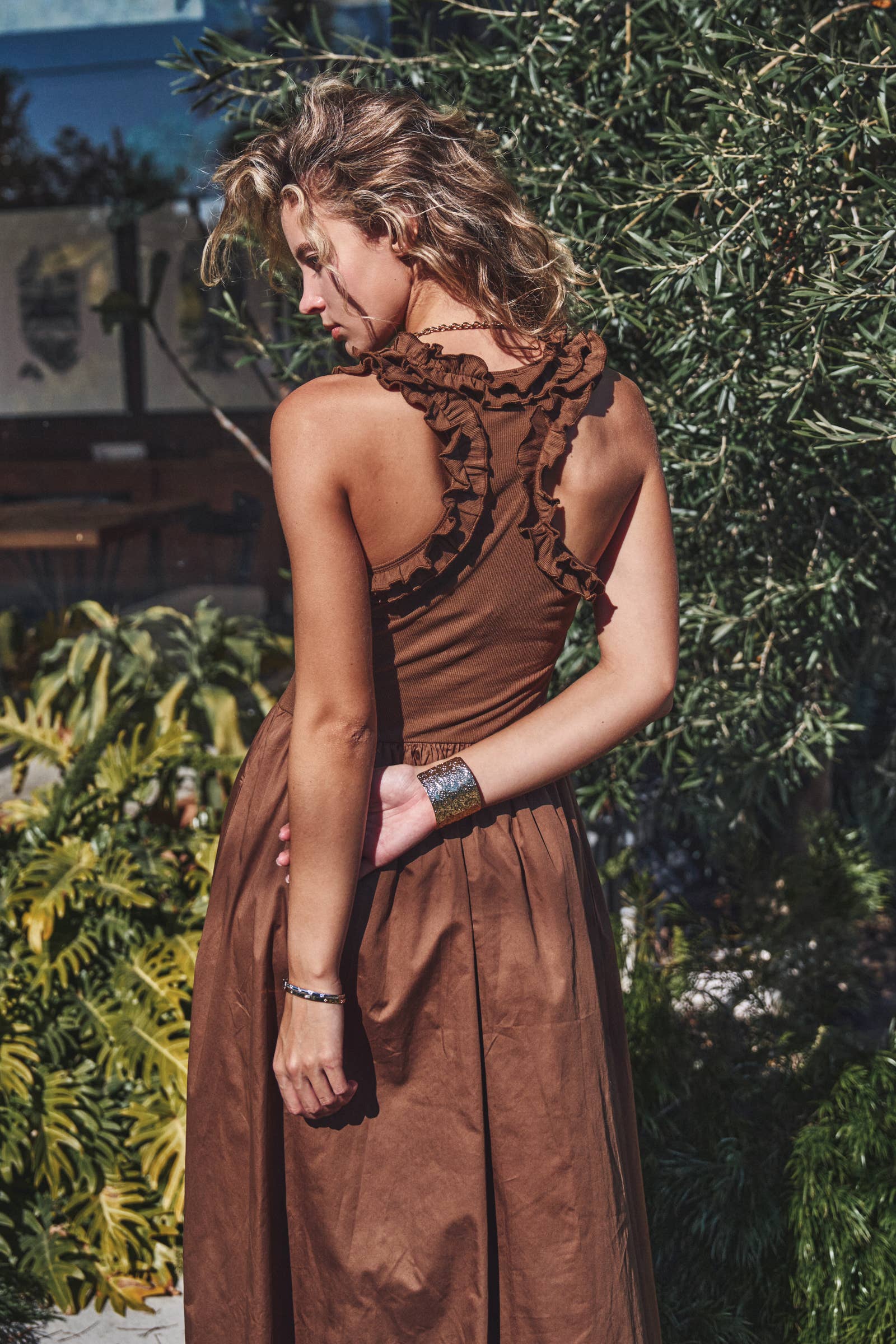 Styling Tips: Lean into the rich chocolate hue by pairing with gold jewelry and white strappy heels for a chic contrast.