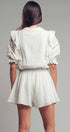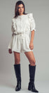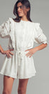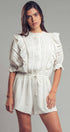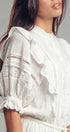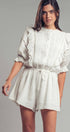 This boho-inspired romper features delicate lace panels, ruffle accents, and a relaxed fit for effortless western style. Crafted from lightweight, breathable cotton with a soft rayon lining, it offers all-day comfort and a feminine silhouette. The elastic drawstring waist ensures a flattering, adjustable fit, while puffed sleeves and flowy shorts add to its airy charm—perfect for spring 2025 clothing, Easter, or summer celebrations.