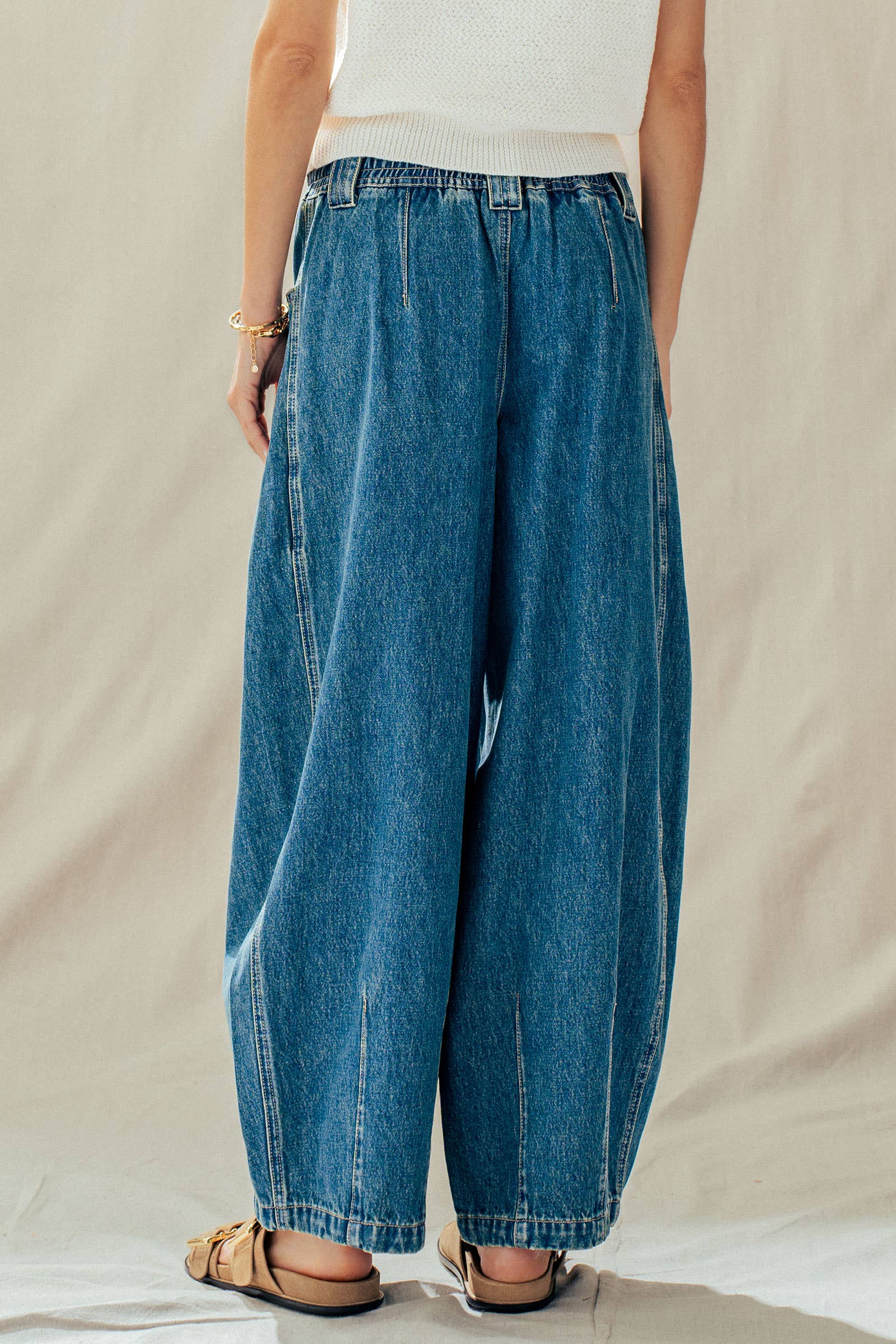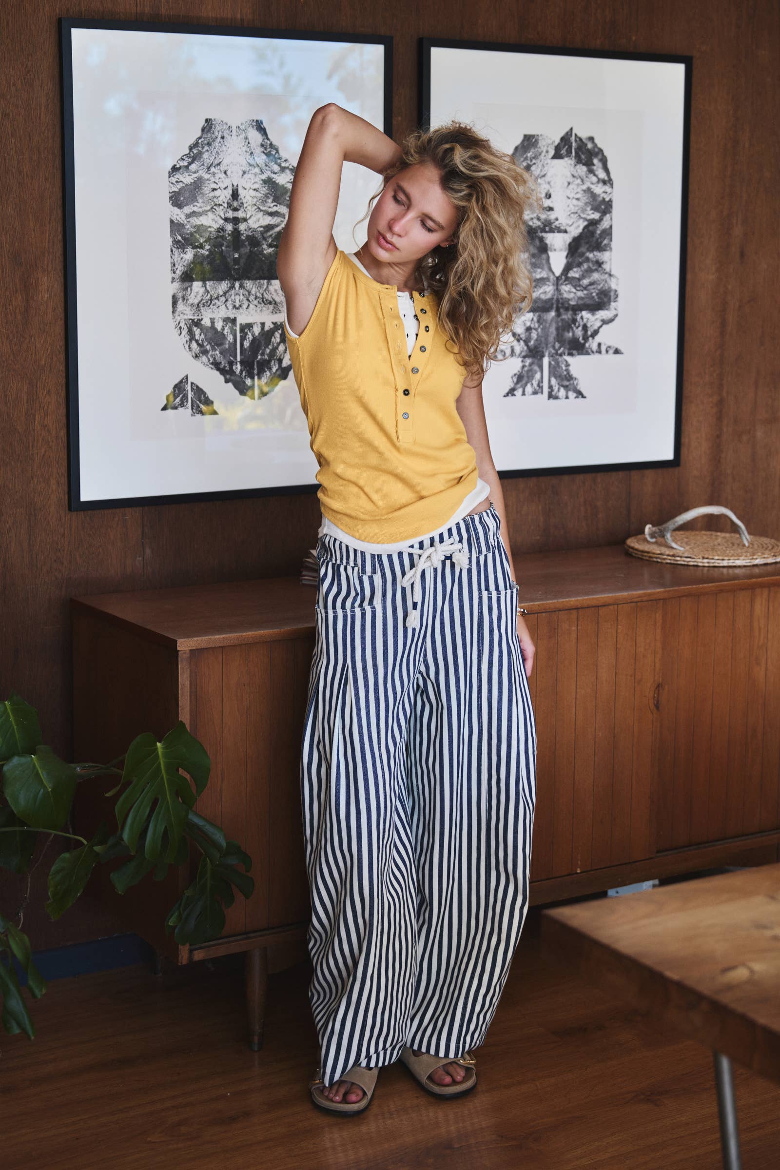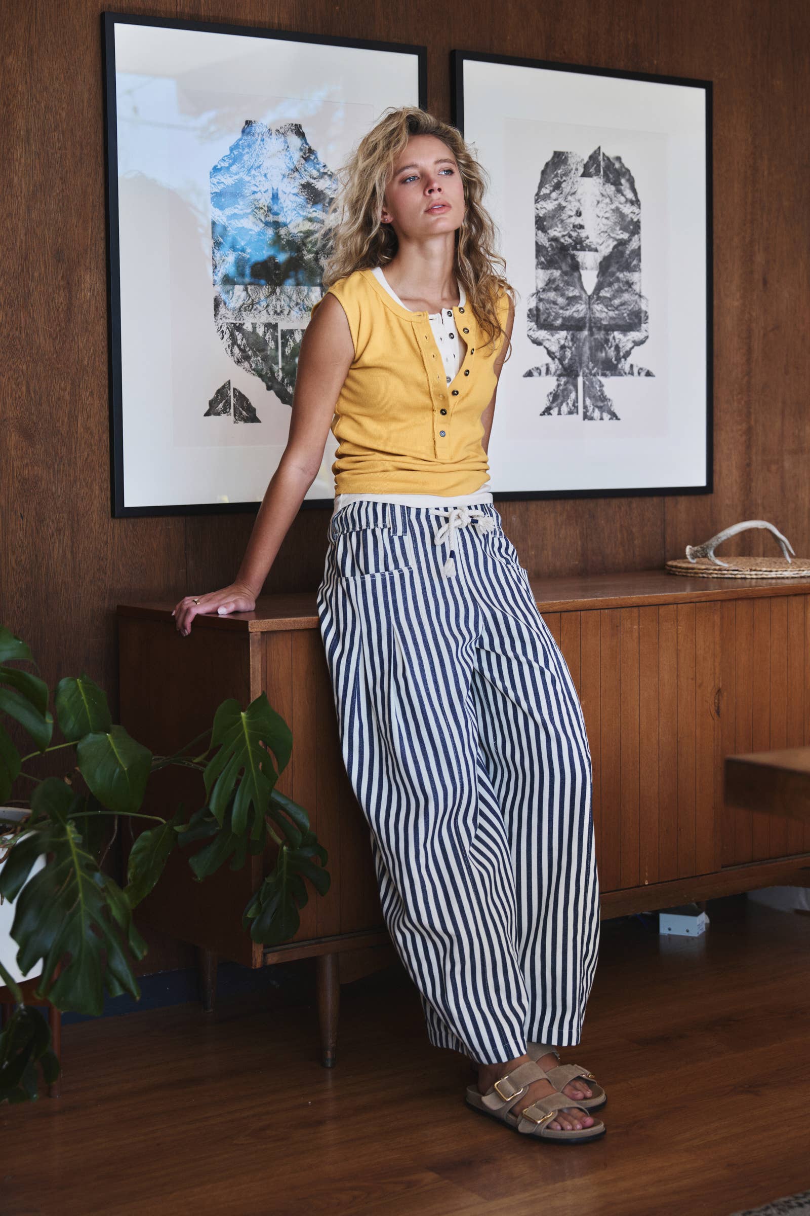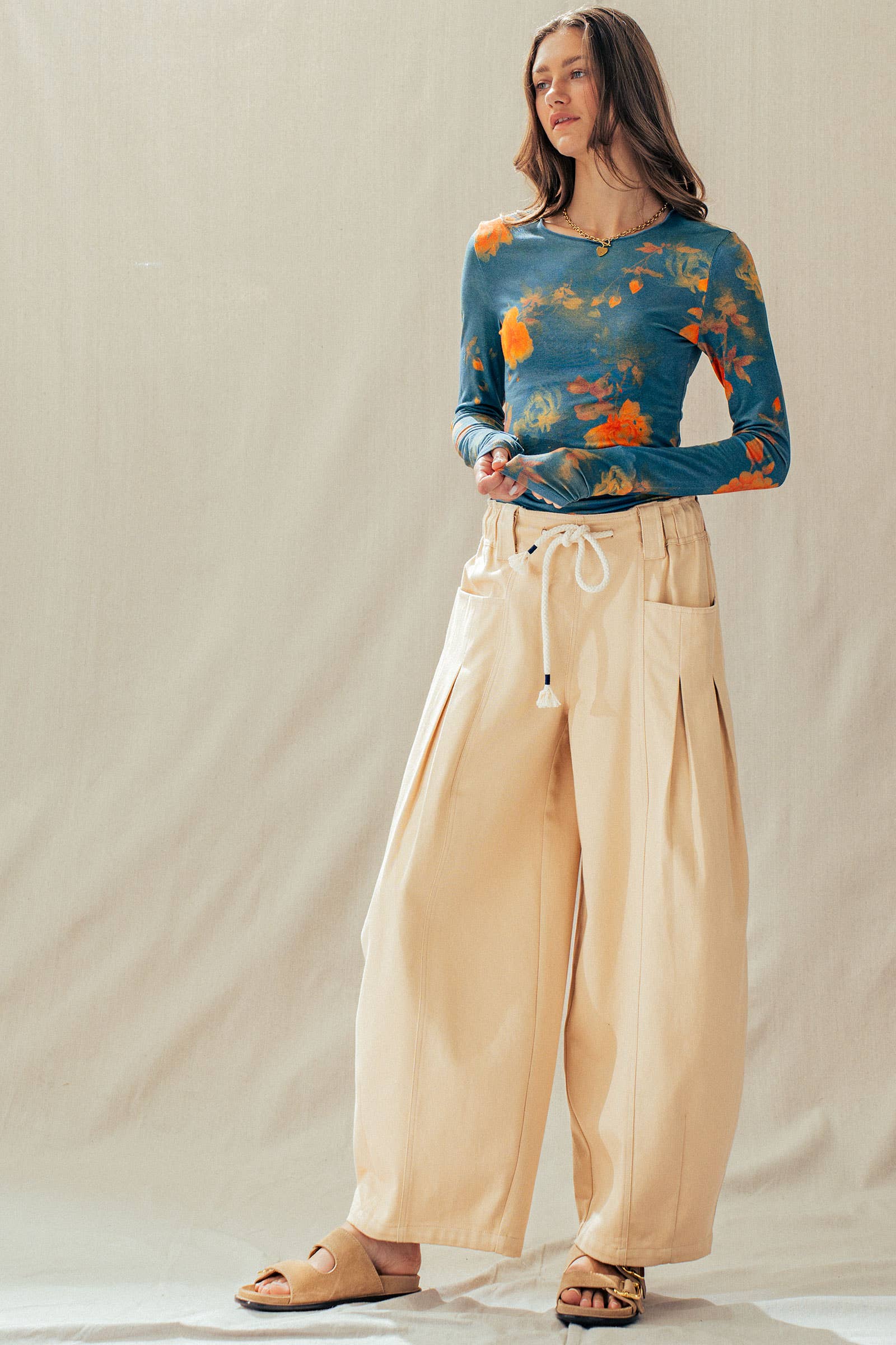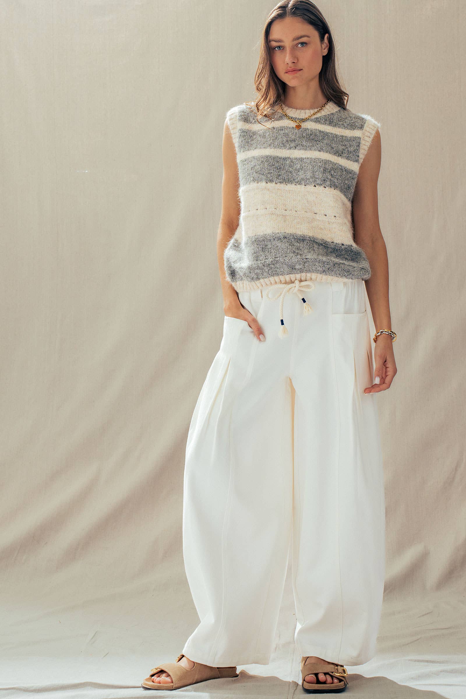 Stay ahead of the curve with these architectural balloon pants. Featuring a dramatic barrel-leg silhouette created by deep front pleats, these trousers offer a modern, relaxed fit that is effortlessly cool. Finished with a nautical rope drawstring for a touch of coastal flair.