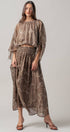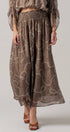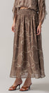 Rope Print Smocked Waist Maxi Skirt Linen Silk