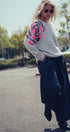 - Oversized floral sequin embellishment