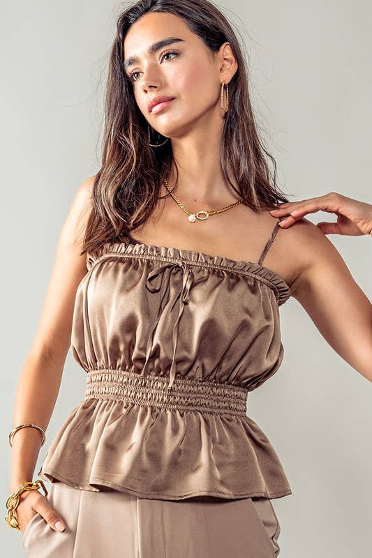 Silky Gathered Waist Spaghetti Strap Summer Top