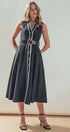 Sleeveless Contrast Trim A-Line Midi Dress