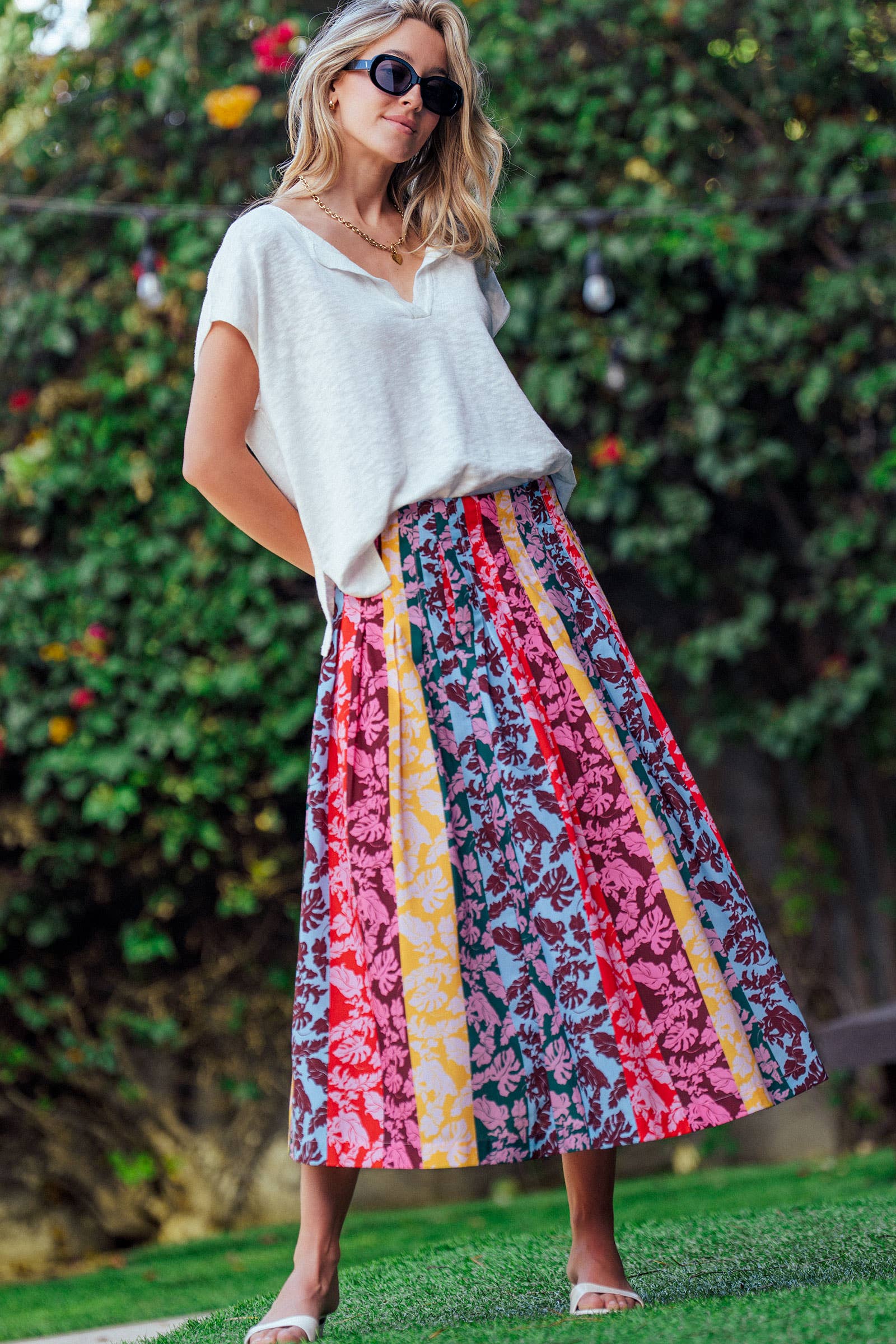 Styling Tips: An effortless "throw-on-and-go" piece. Merchandise with white linen skirts (as shown) for a vacation look, or tuck into denim shorts for weekend errands.