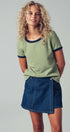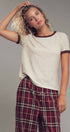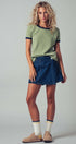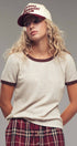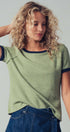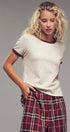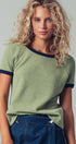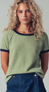 This soft knit crewneck top blends comfort and style with subtle texture and contrast trim details. Its relaxed fit and raglan sleeves make it perfect for casual layering or pairing with wide-leg pants and denim for summer 2025.