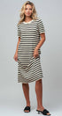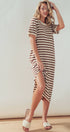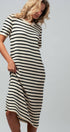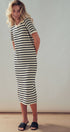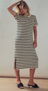 Design: Horizontal black and cream stripes with a midi length