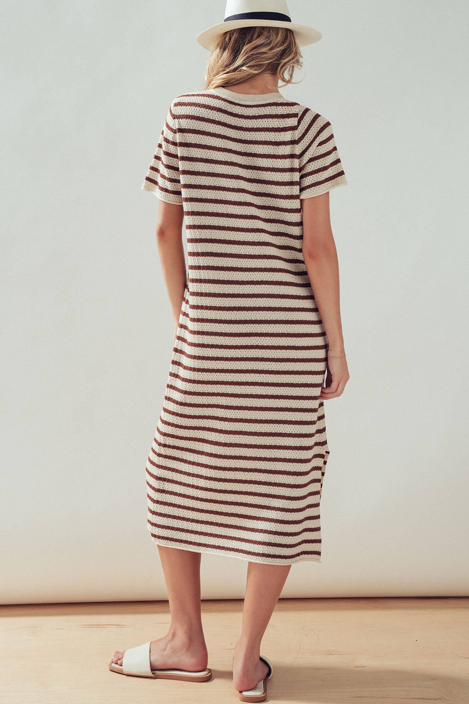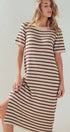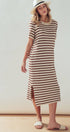Striped Crochet Knit Short Sleeve Midi Dress