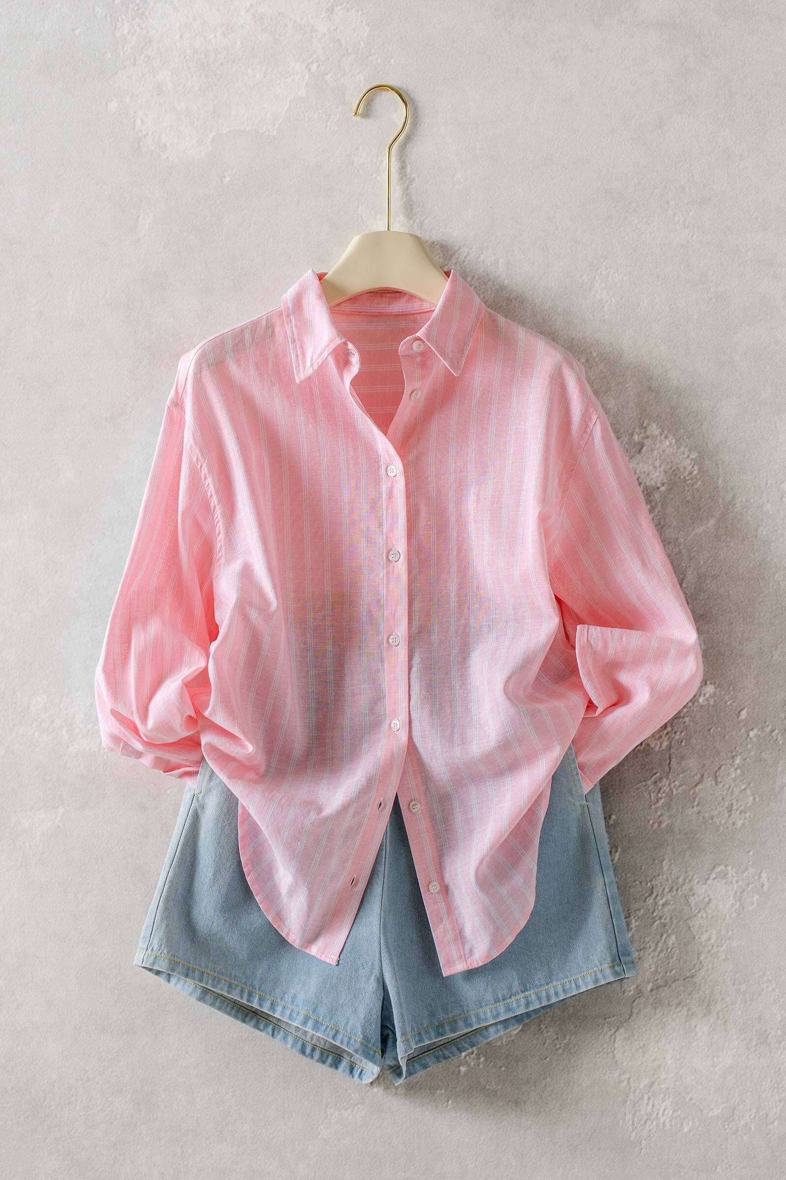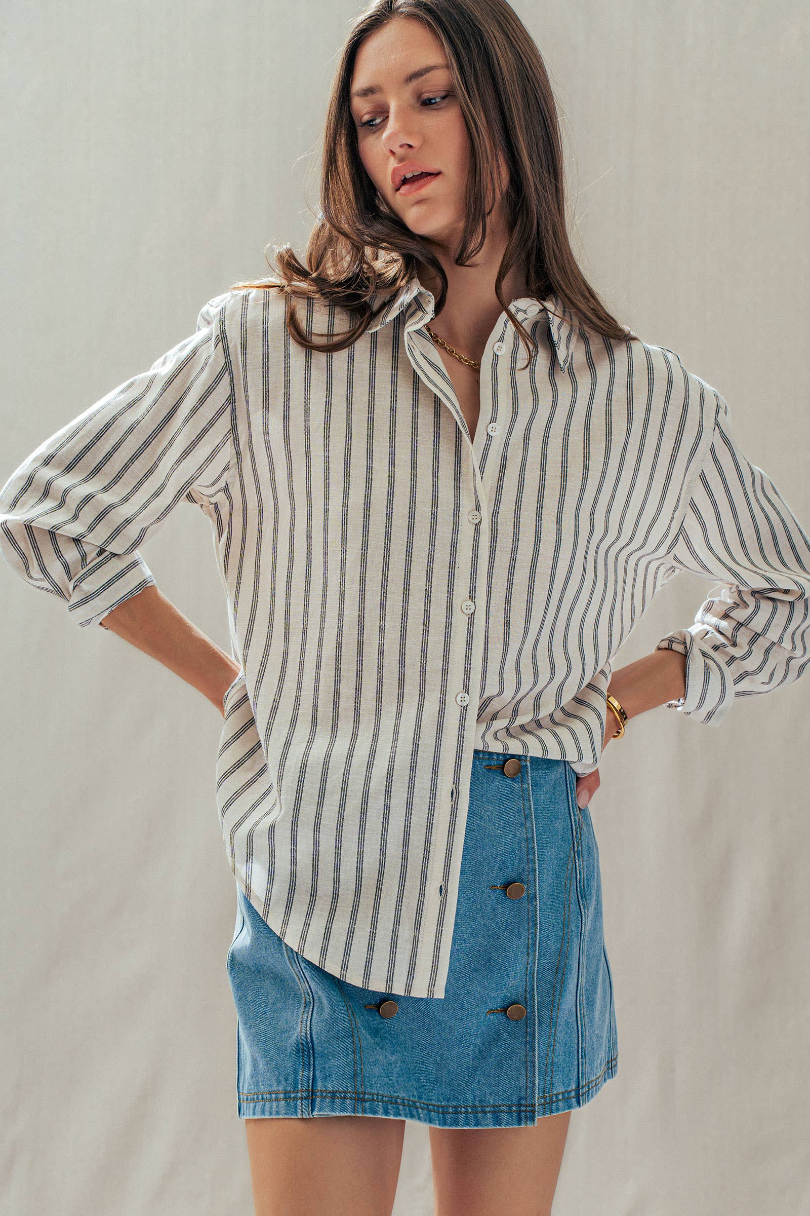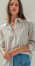 Striped Linen Blend Button Up Shirt
