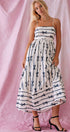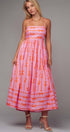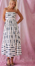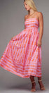 Sweet Ribbon Stripe Bow Print Smocked Back Maxi Dress
