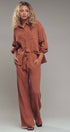 - Wide-leg pants with drawstring waist