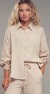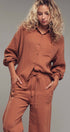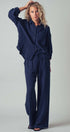 Stay effortlessly stylish with this cozy two-piece set featuring a relaxed button-up top and wide-leg drawstring pants. Made from soft, breathable cotton gauze, this set is perfect for lounging or casual days out with a boho twist.