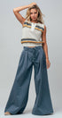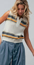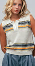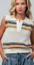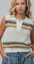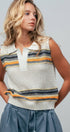 Textured Stripe Collared Open-Knit Vest