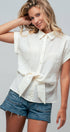 Elevate your everyday look with this effortless modal-blend blouse. Featuring a chic tie-front detail and cuffed short sleeves, this soft, collared top offers a relaxed yet polished silhouette perfect for pairing with high-waisted denim.
