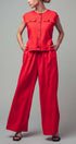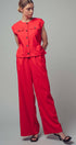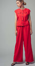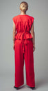 Command attention in this stunningly sophisticated jumpsuit, designed for the polish of a tailored set in one effortless piece. Crafted from a structured linen-cotton blend, it features a sleeveless bodice and flowing wide legs. An attached tie-back belt cinches the waist, creating a flattering peplum effect for a modern finish.