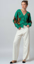 Details: V-neckline, full button-front closure, and ribbed trim at the cuffs and hem.
