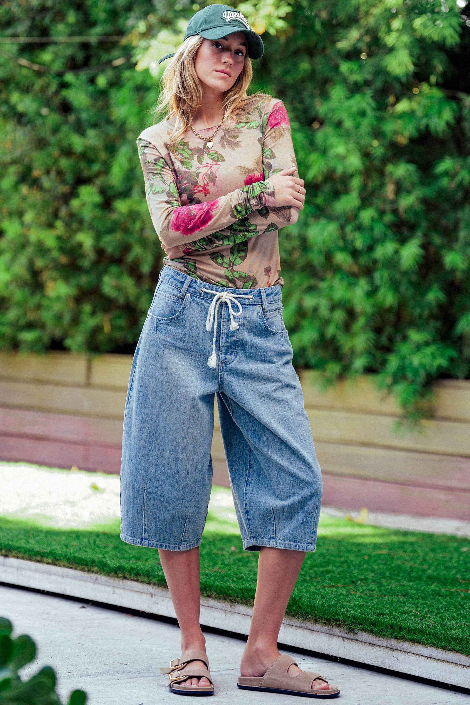 Styling Tips: Merchandise this with vintage-wash denim and a baseball cap (as shown) for a cool, off-duty vibe, or tuck it into a leather skirt for an edgy night-out look.