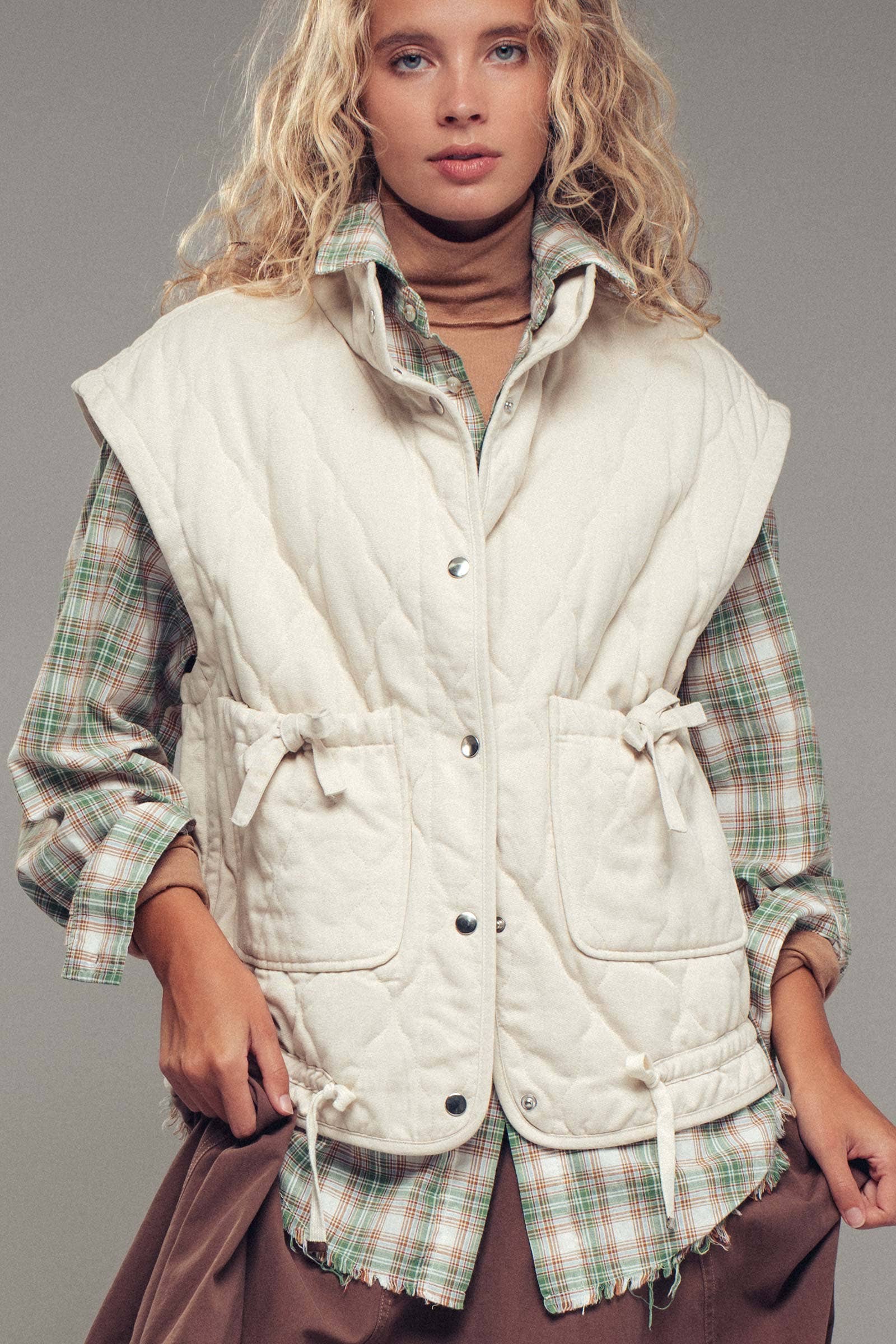Experience a cozy, retro vibe with this vintage washed, quilted padded vest designed for effortless layering and soft feel comfort. Made from padded cotton-blend fabric with a lived-in finish, it's the perfect transitional layer for casual fall looks.