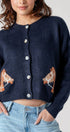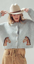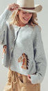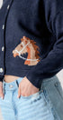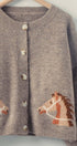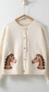 Embrace equestrian charm with this playful cropped cardigan featuring adorable horse motifs and classic button-front styling. Perfect for western-inspired looks, this cozy knit sweater offers both style and comfort with its ribbed trim details and versatile design.